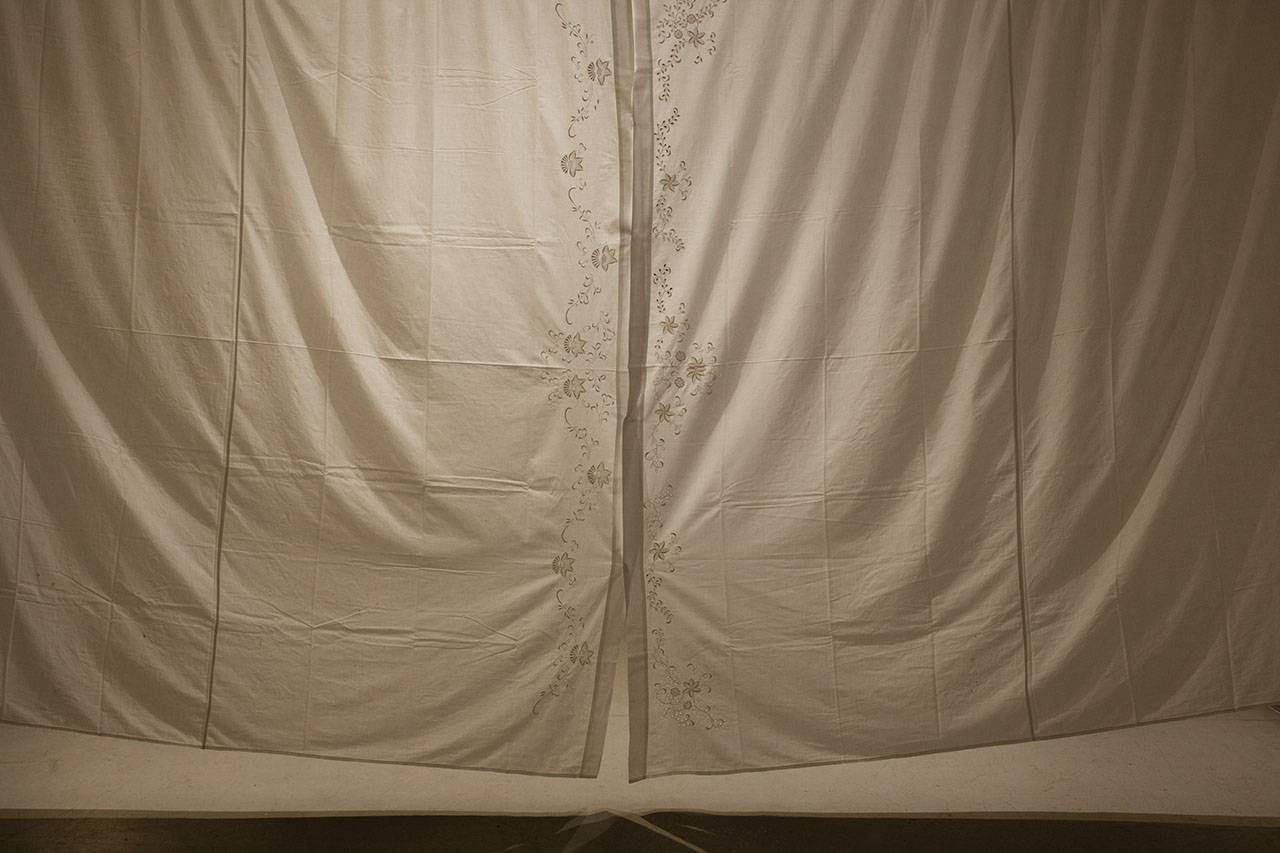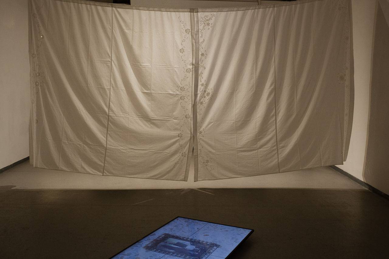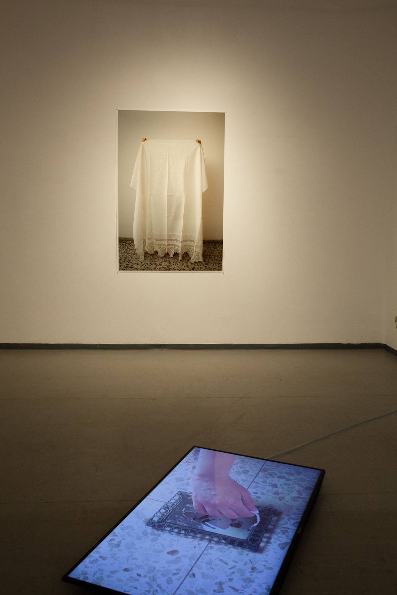 ב־12 במרץ פתחתי את תערוכת היחיד הראשונה שלי, חור גדול באמצע, שאצרה איריס פשדצקי בגלריה P8 ומיד אחר כך נכנסנו לסגר של חודשיים. לא דמיינתי את זה אבל יצא שבאמת נפער חור גדול באמצע של הזמן ותחושת הרצף של כולנו. לפני שלושה שבועות התערוכה נפתחה מחדש בהתאם להנחיות הממשלה והיא תעמוד עד ה־13.6. בתערוכה אני ממשיכה את העיסוק שלי במעבר של זכרון ומטען תרבותי דרך חפצי משפחה – נדוניות ותצלומי משפחה.