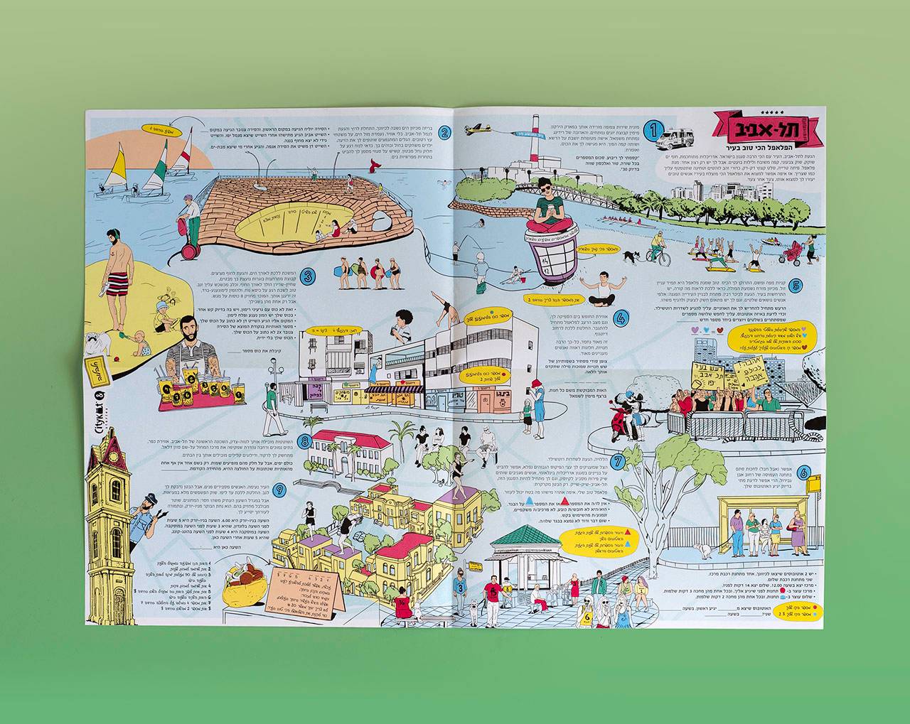 אירה מציינת שלא תמיד היה לה כל כך פשוט לצייר את כל האתרים בישראל. ״נורא רציתי לכלול את גן החשמל בספר, אבל איך אפשר אותו? הוא נטול כל אייקון. אז ציירנו אותו מלא פעילויות כמו כמו יוגה וחנויות מגניבות. תל אביב מאוד קוסמופליטית, יש בה אוסף של דברים שדומים לערים אחרות. אבל המקבץ הזה הוא מה שעושה את העיר.