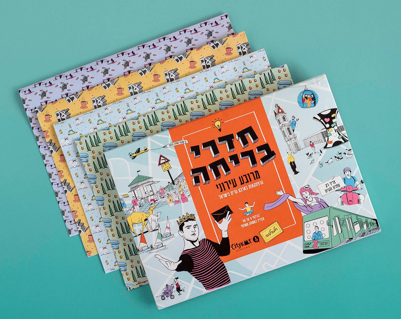 אך אין צורך לקום מהספה, כי הכל חלק ממשחק קופסה חדש של מותג העיצוב העירוני ״סיטיקט סטוריז״ (Citykat Stories) ומגזין הילדים חלבלוב. ״נפגשנו לפני שנתיים בשבוע האיור בתל אביב, היה לנו קשר טוב וחשבנו איך לשתף פעולה״, נזכרת אירה גינזבורג בשיחת זום, במפגש הראשון שלה עם אירית חוסחאלק וטלי הרדאבל ממגזין הילדים. ״הקונספט שלנו זה ערים וטיולים, וחשבנו שהמיקוד שלנו עם היכולת שלהן לכתוב חידות יהיה שילוב מצויין״.