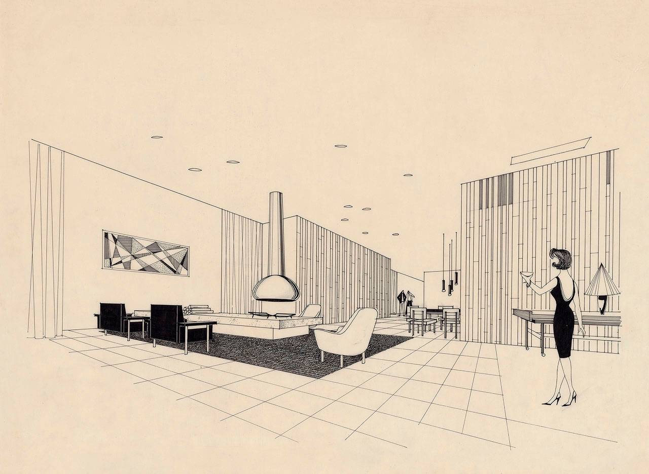 פינת הסבה בפנטהאוז של צ׳ארלס קלור, 1963-4