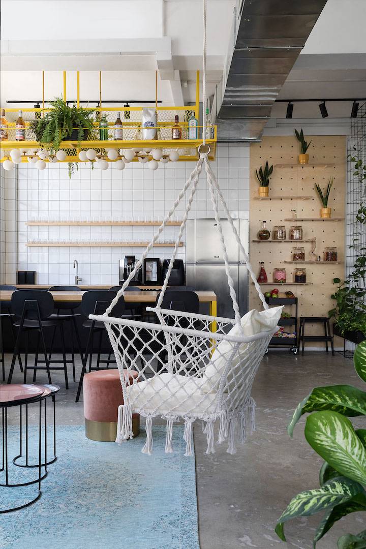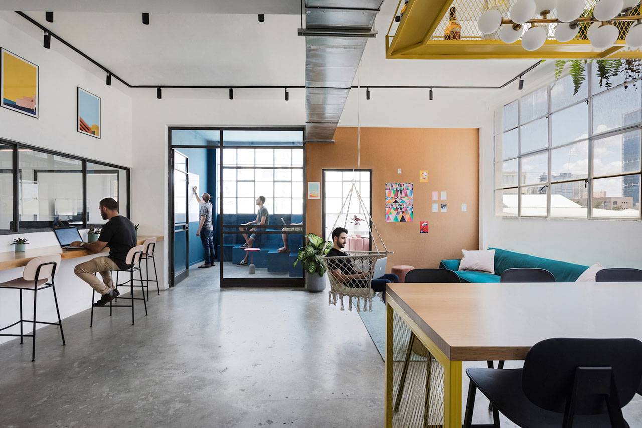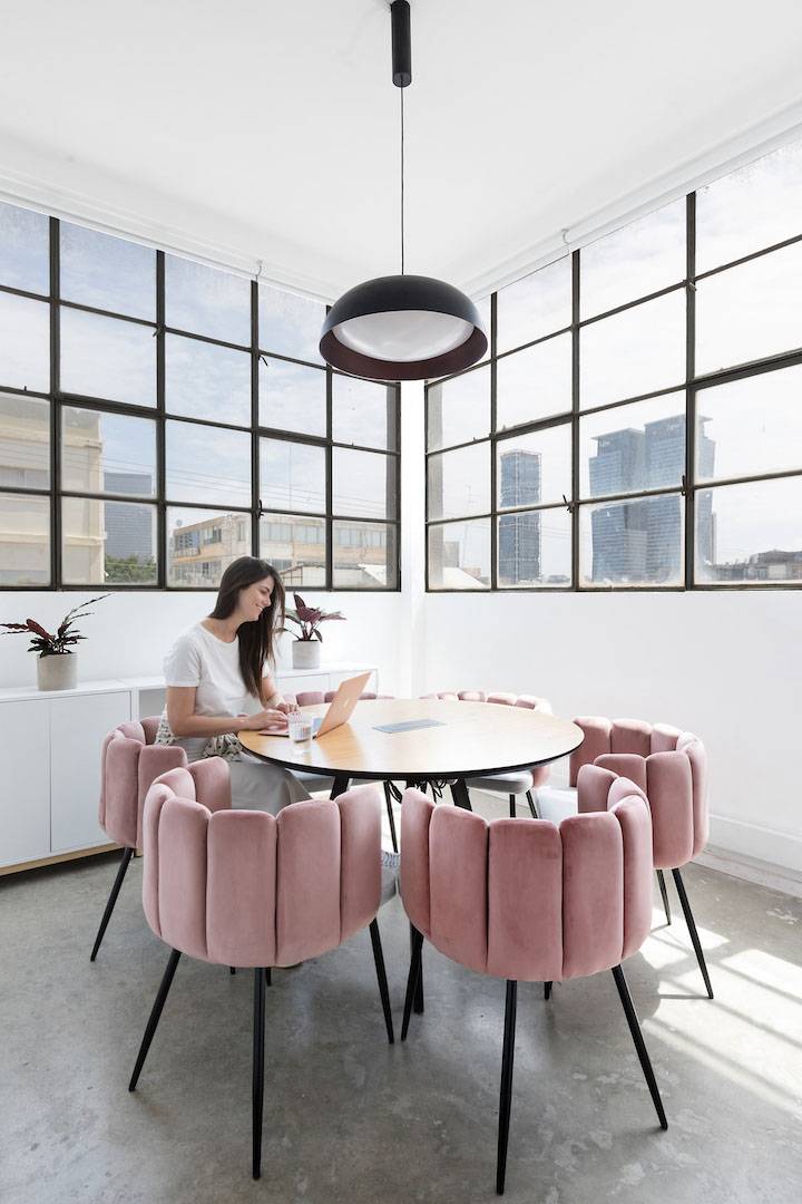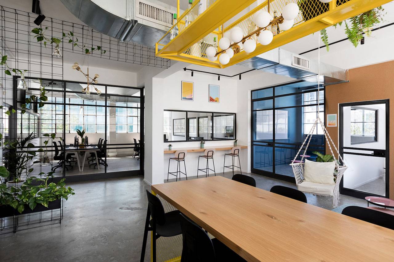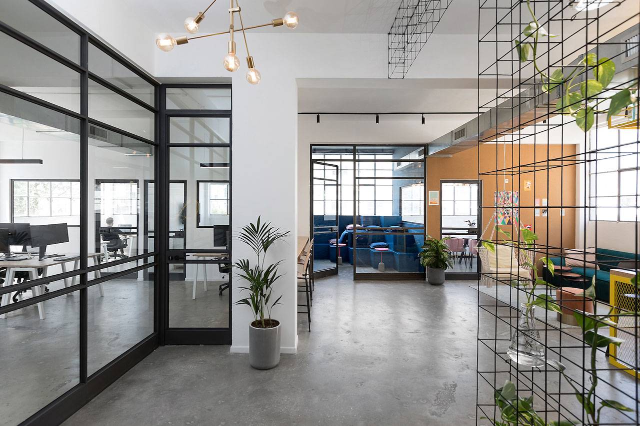 להבדיל ממצב רווח בתחום עיצוב משרדים, שבו מושקעים כסף ומאמץ רב כדי לייצר מראה תעשייתי ומחוספס, במקרה הזה המראה ה״גראנג׳י״ של החלל הוותיק היה חלק בלתי נפרד מאווירת המקום: רצפות עבודה מבטון, תקרות גבוהות וחלונות ברזל גדולים שלא הוחלפו מאז נבנה הבניין בשנות ה־60. נתונים אלו היו בסיס נוח לזיקוק הקו עיצובי של המשרד – קו צעיר, טרנדי ועם זאת מאופק, נקי ואופטימי.