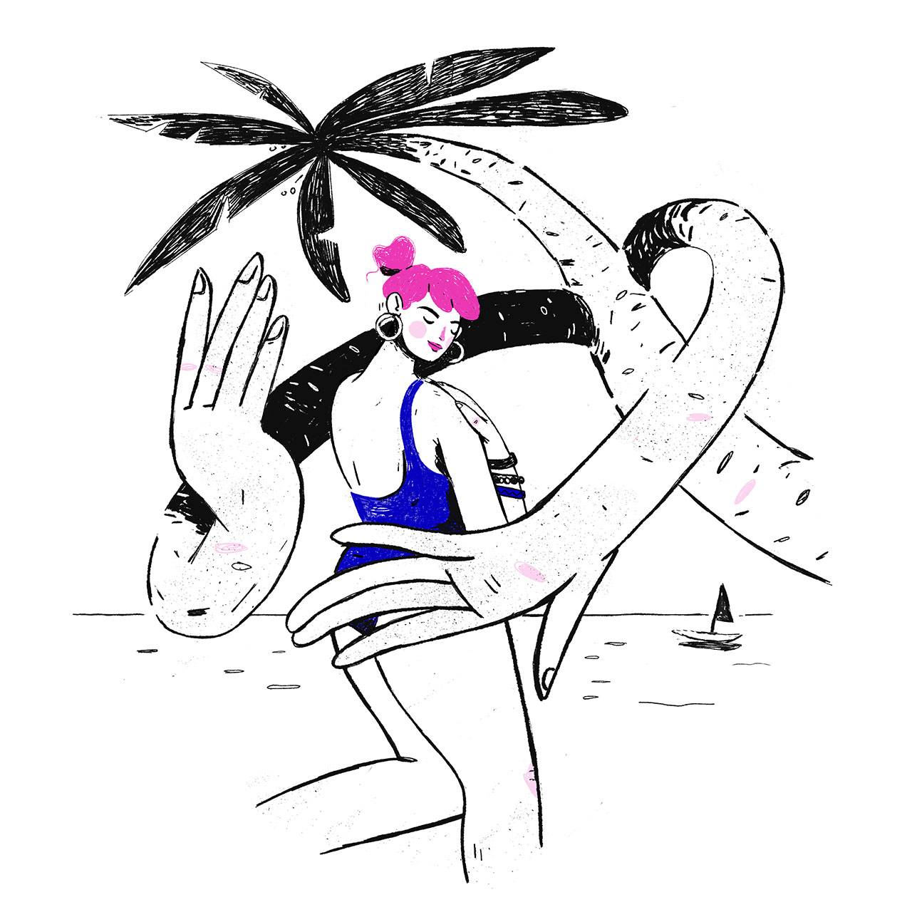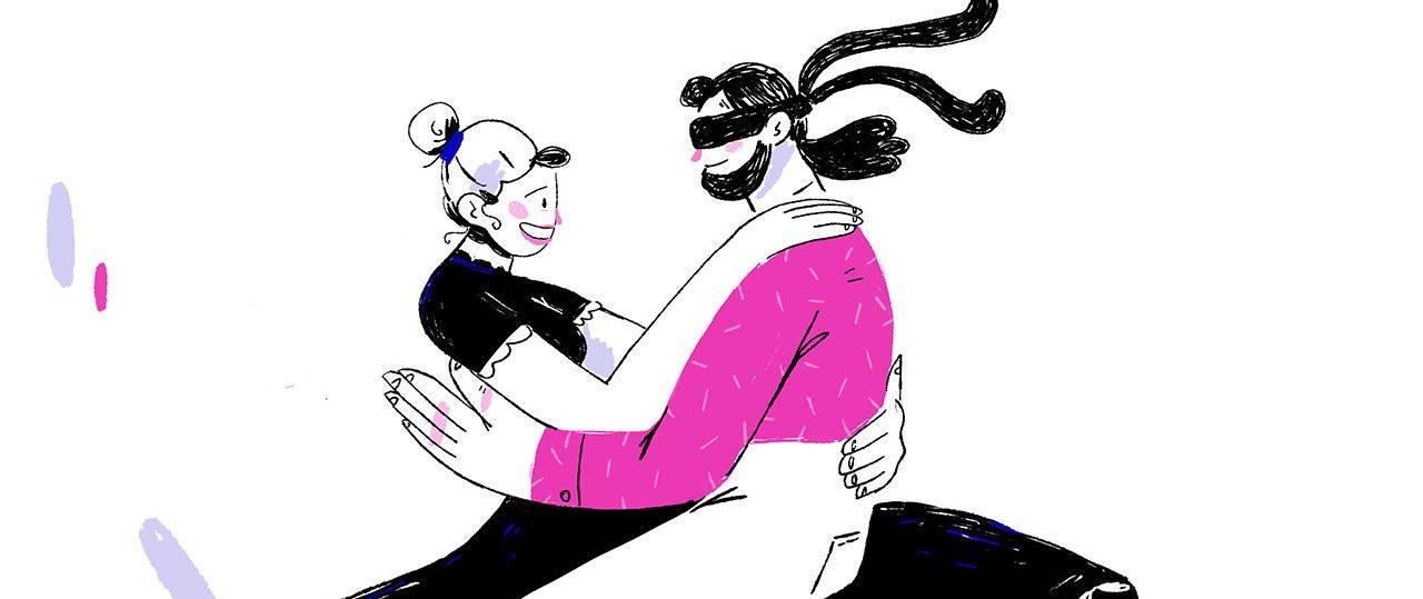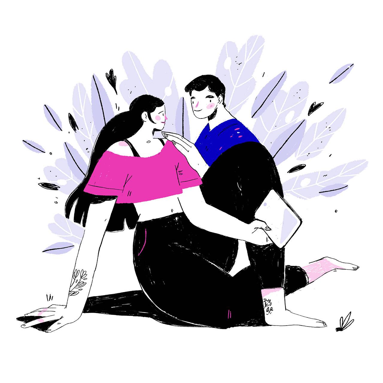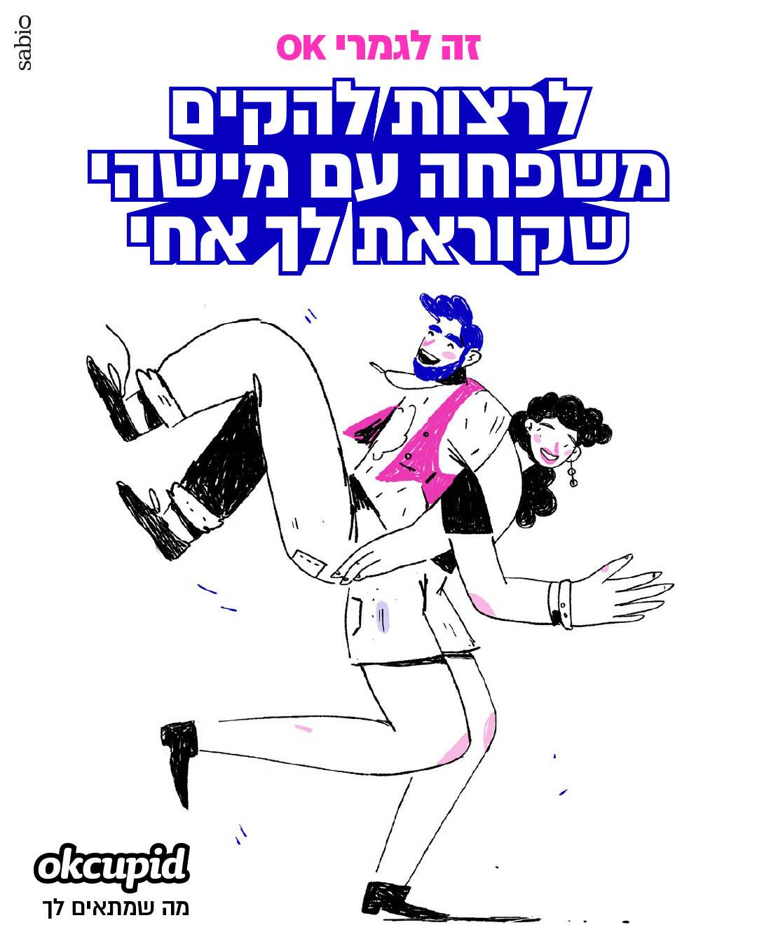 לכן, כשלפני חודש וקצת פנו אלי ממשרד הפרסום סאביו בבקשה לנסות לייצר קמפיין איור ואנימציות עבור אפליקציית ההיכרויות OkCupid, קמפיין שיפנה לקשת רחבה של אנשים וידגיש את מגוון האפשרויות שיש לחיבור בין בני זוג, מיד נמשכתי לעניין. אני אוהב לגעת באיור במצבים של תקשורת וזוגיות, ומבחינתי זה היה איזשהו המשך טבעי לאותה סדרת סתיו שיצרתי, ולאותו תהליך ארוך שאני נמצא בו של מחקר איורי על יחסים בין־אישיים. זו היתה הזדמנות להדגיש את המסר האישי שלי דרך האיור.