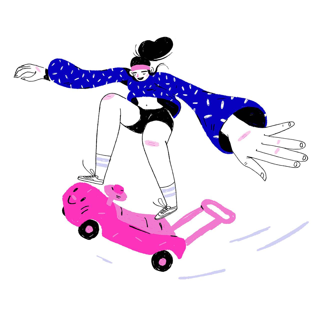 התהליך איפשר לי מצד אחד המון חופש אבל מצד שני גם אתגר לא פשוט לפיצוח הניגודיות שנראית בהתחלה בלתי אפשרית – איך מעבירים את המסרים של המותג, שרבים מהם נוגעים בנושאים שהם טאבו בחברה הישראלית, ובאותו הזמן שומרים על אווירה כיפית וקלילה. איך מאיירים מישהי שלא רוצה ילדים? או מישהו שלא מצביע בבחירות? זה כמובן מעלה נקודות מורכבות, ועלול לקחת את האיור למקום פחות קליל וכיפי.
