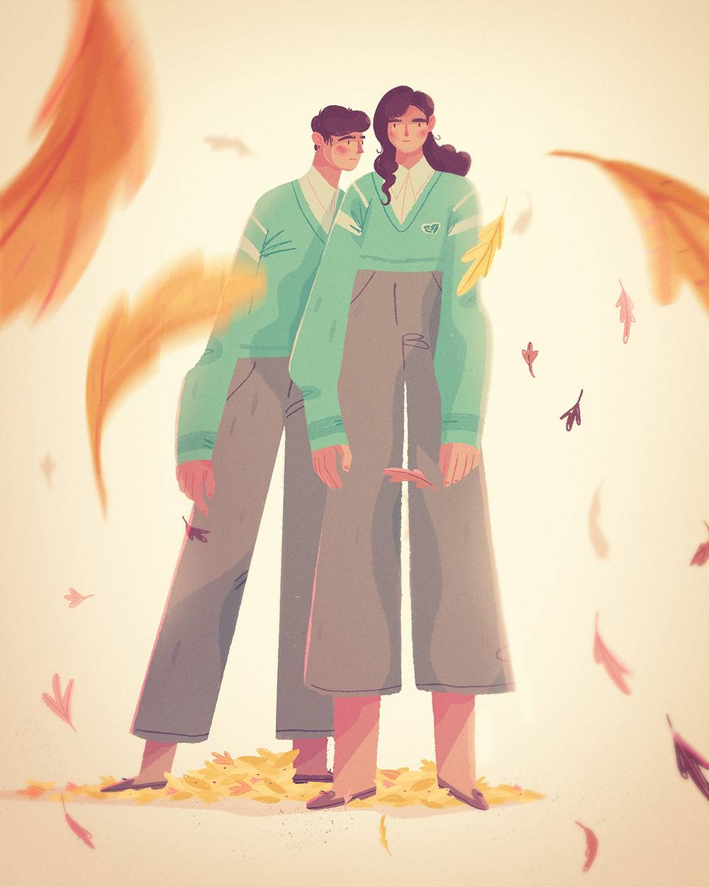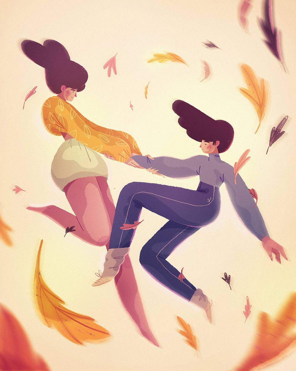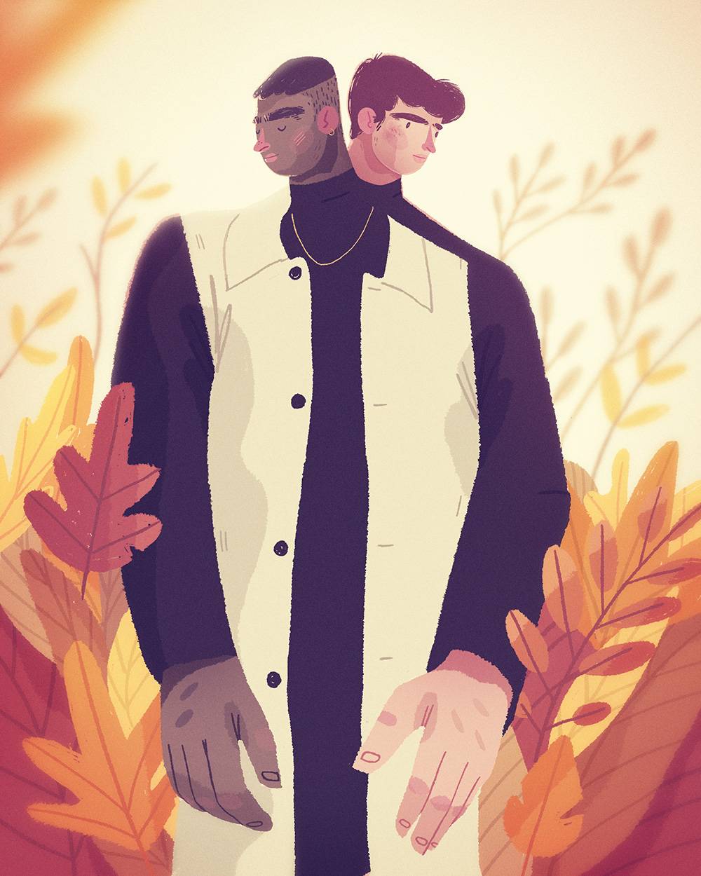 חשבתי שזה יהיה מעניין לחבר בין הדינמיקה הסתווית לבין אותו דבר מיוחד שקורה בין בני אדם. אז התחלתי לערבב בין צבעי העונה לבין הרגשות שעלו לי כשחשבתי על מערכות יחסים בחיים שלי ושל הקרובים אלי. התוצאה הייתה סדרה של איורים שמתעסקת במערכות יחסים שונות ומגוונות, בינהן יחסים בין אחים, חברים, בני זוג, יחסים פוליאמורים ועוד.