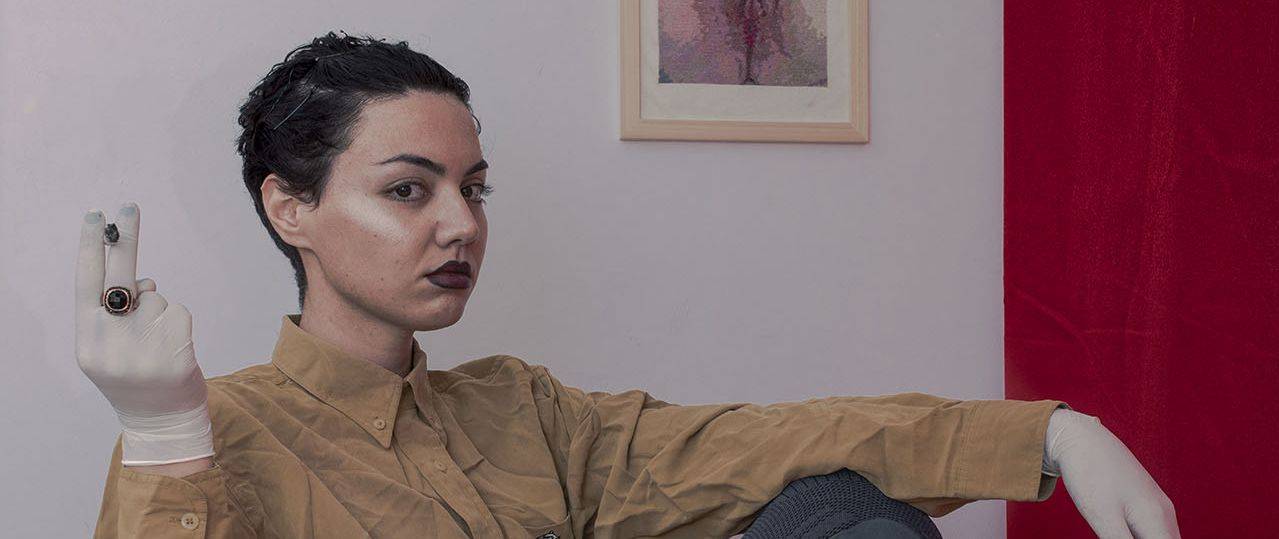 הדיוקן העצמי בציור זה הוא ״סנאפשוט״ מהחיים שלי, שנוצר בעקבות צילום שנעשה בתערוכה שהשתתפתי בה ביפו בקן הקוקיה. בעבודה הזו אני ממשיכה את העיסוק שלי בציור של מרחבי מחיה בהשראת מגזינים לעיצוב ומתוך צילומי מבנים מקומיים עכשוויים נטושים שמופיעים בהם דימויי נשים שונות.