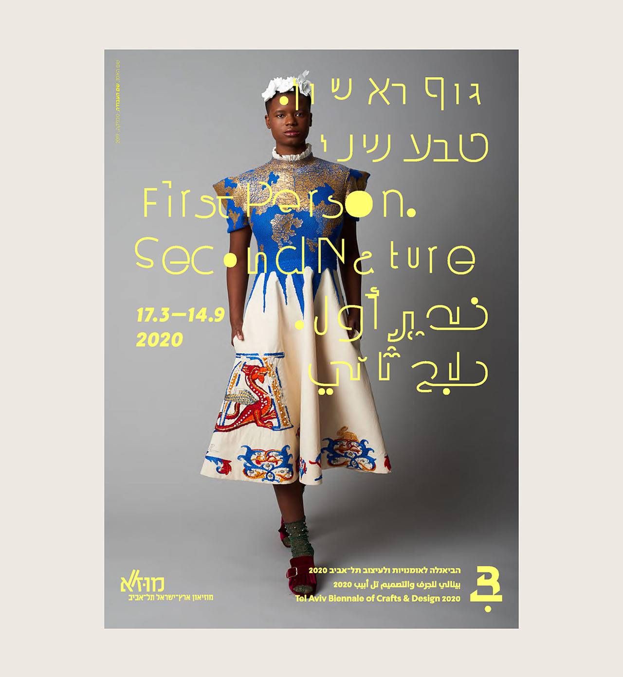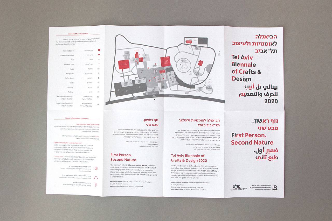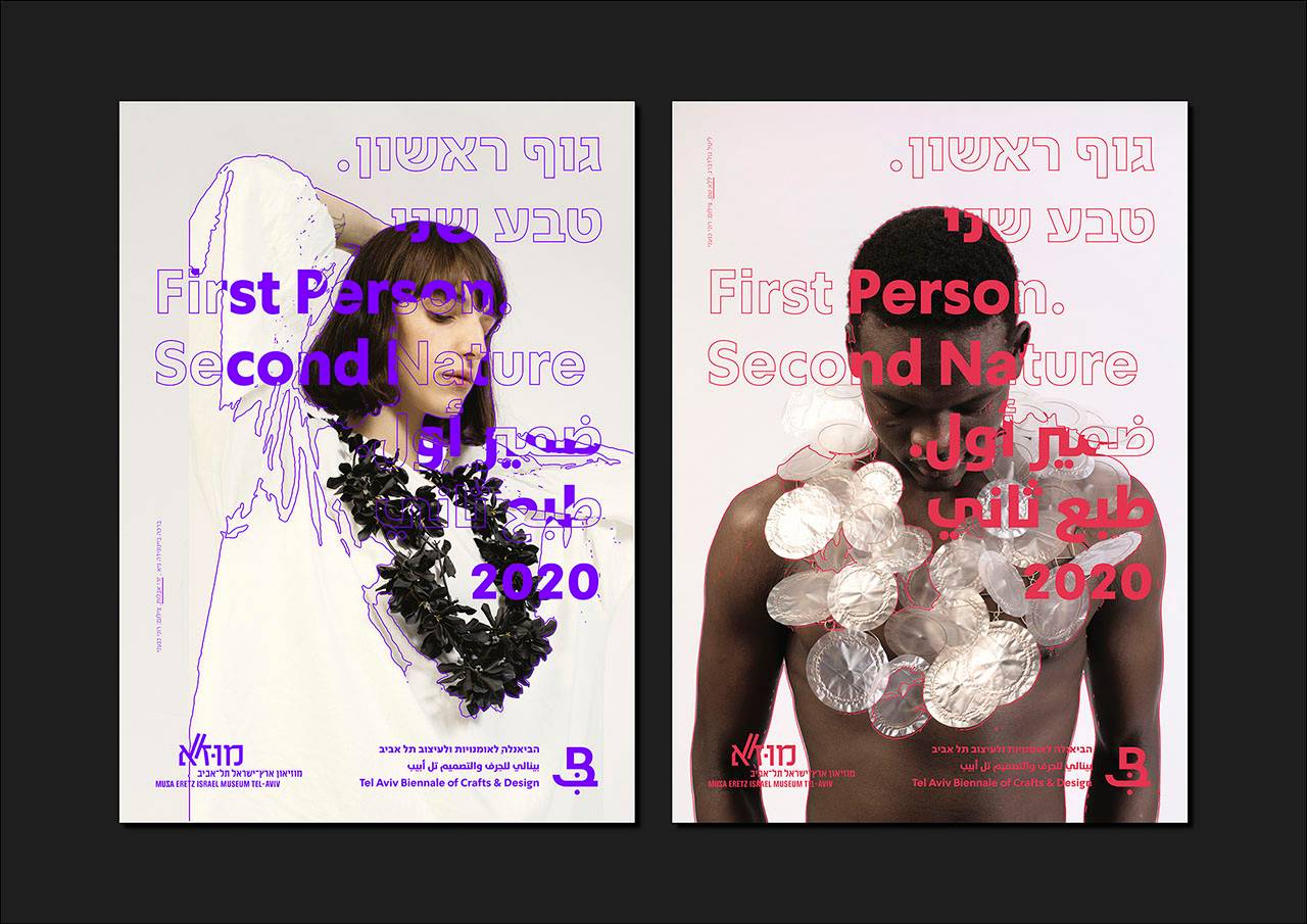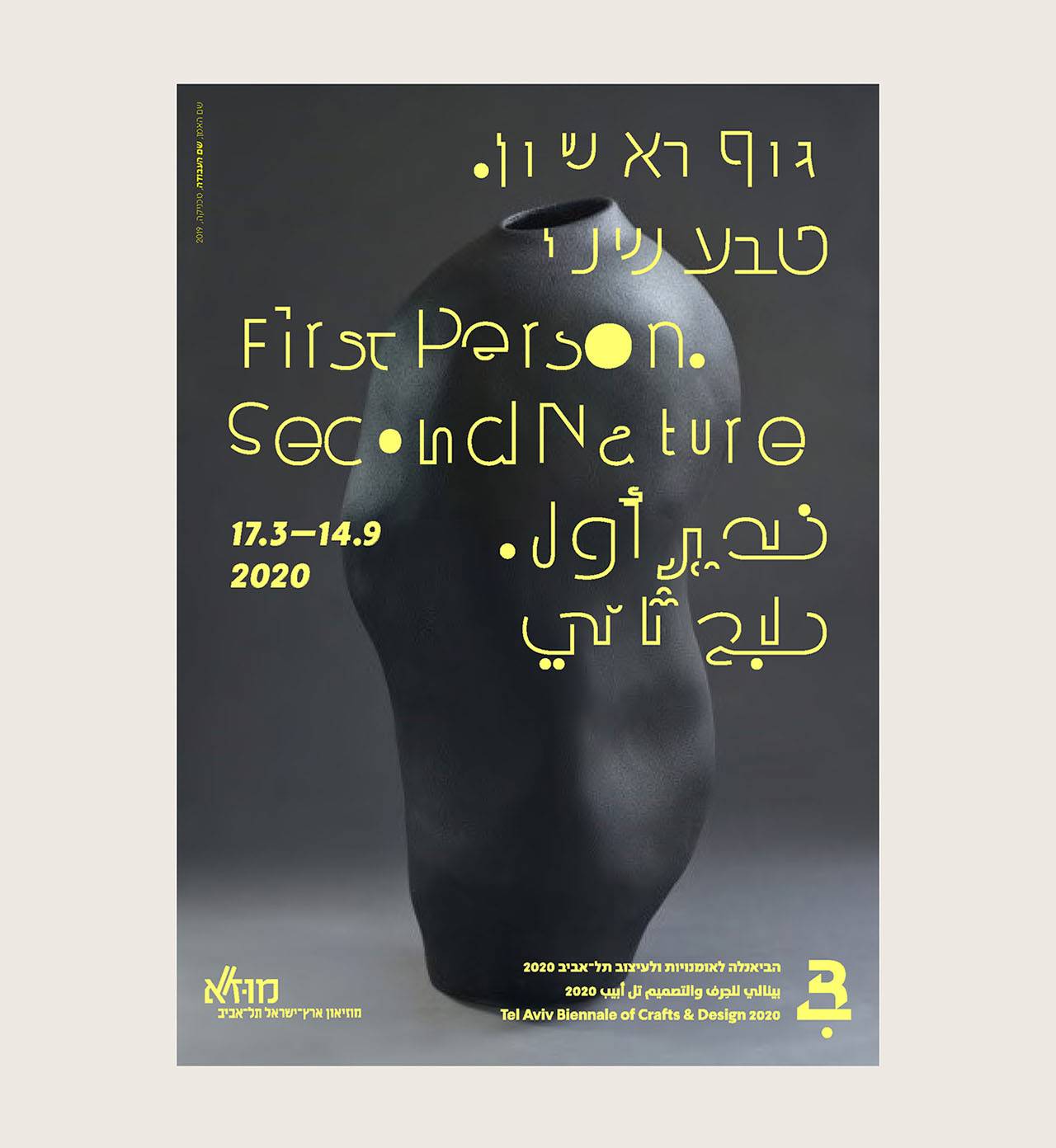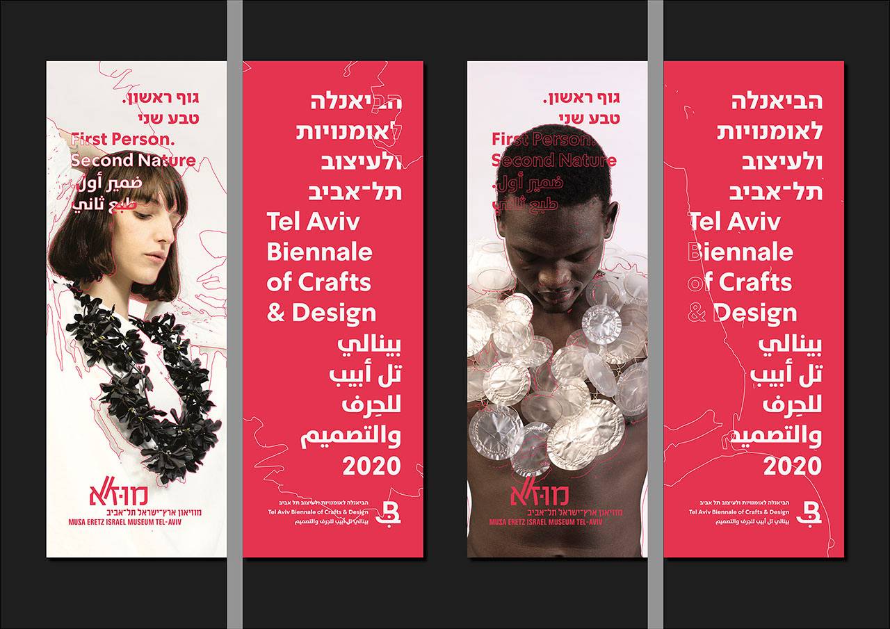 העמדה האוצרותית ביקשה להציג את תחומי הקראפט והעיצוב השונים ״כשהם משולבים זה בזה, מתוך אמונה שתחומי האומנויות (crafts) והעיצוב פועלים בשדה משותף של הקשרים, הן מבחינת היחס לטכנולוגיות חדשות והן מבחינת מקורות ההשראה והגירוי ליצירה״. בבריף התבקשנו לתכנן ולעצב את המרכיבים הקבועים בזהות החזותית של הביאנלה ואת אלו של הביאנלה הנוכחית, שכותרתה ״גוף ראשון. טבע שני״, בתוכה עיצוב תדמיתי ועיצוב מידע בכל חללי המוזיאון, עיצוב הקמפיין הפרסומי, עיצוב הקטלוג ועוד.