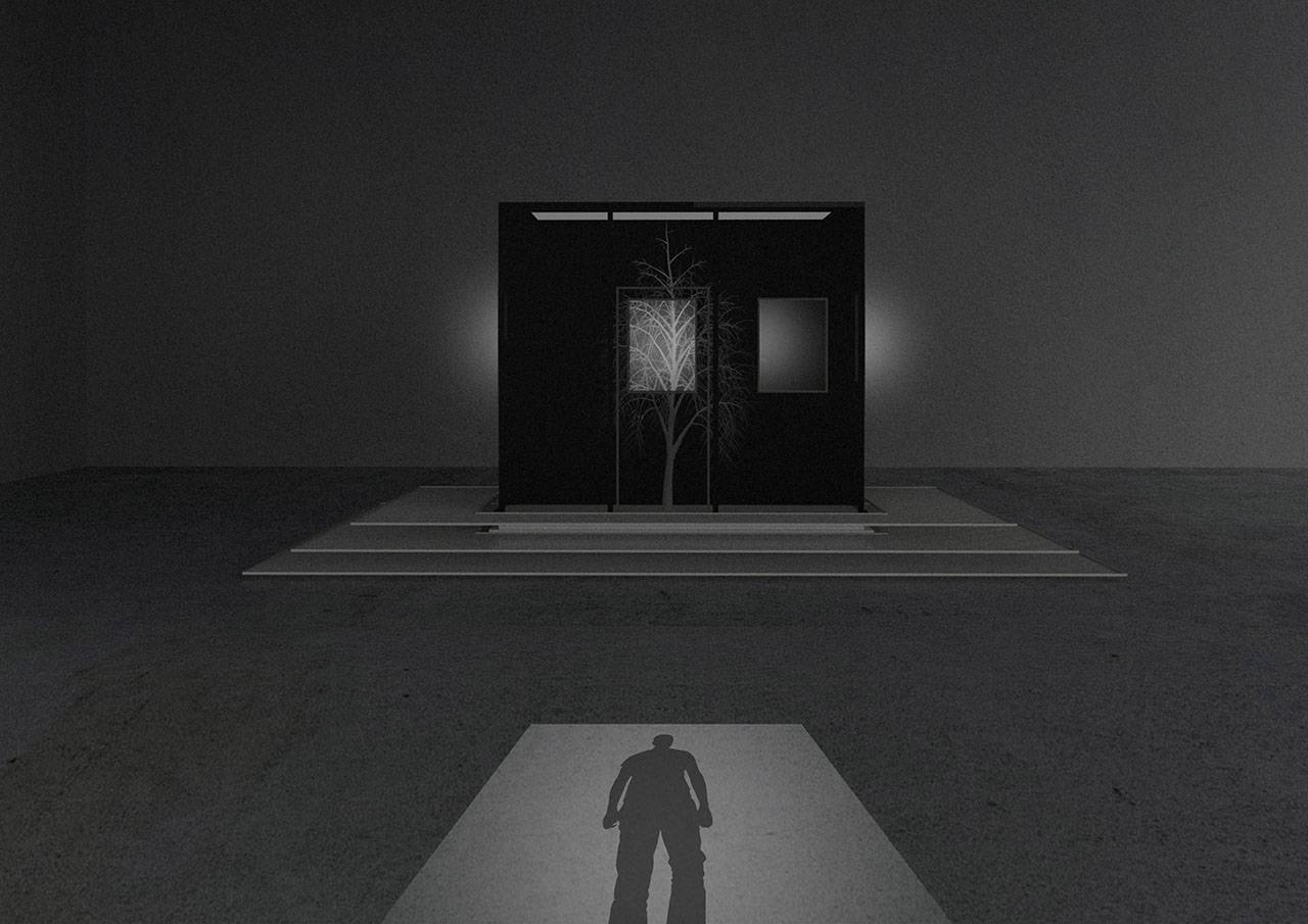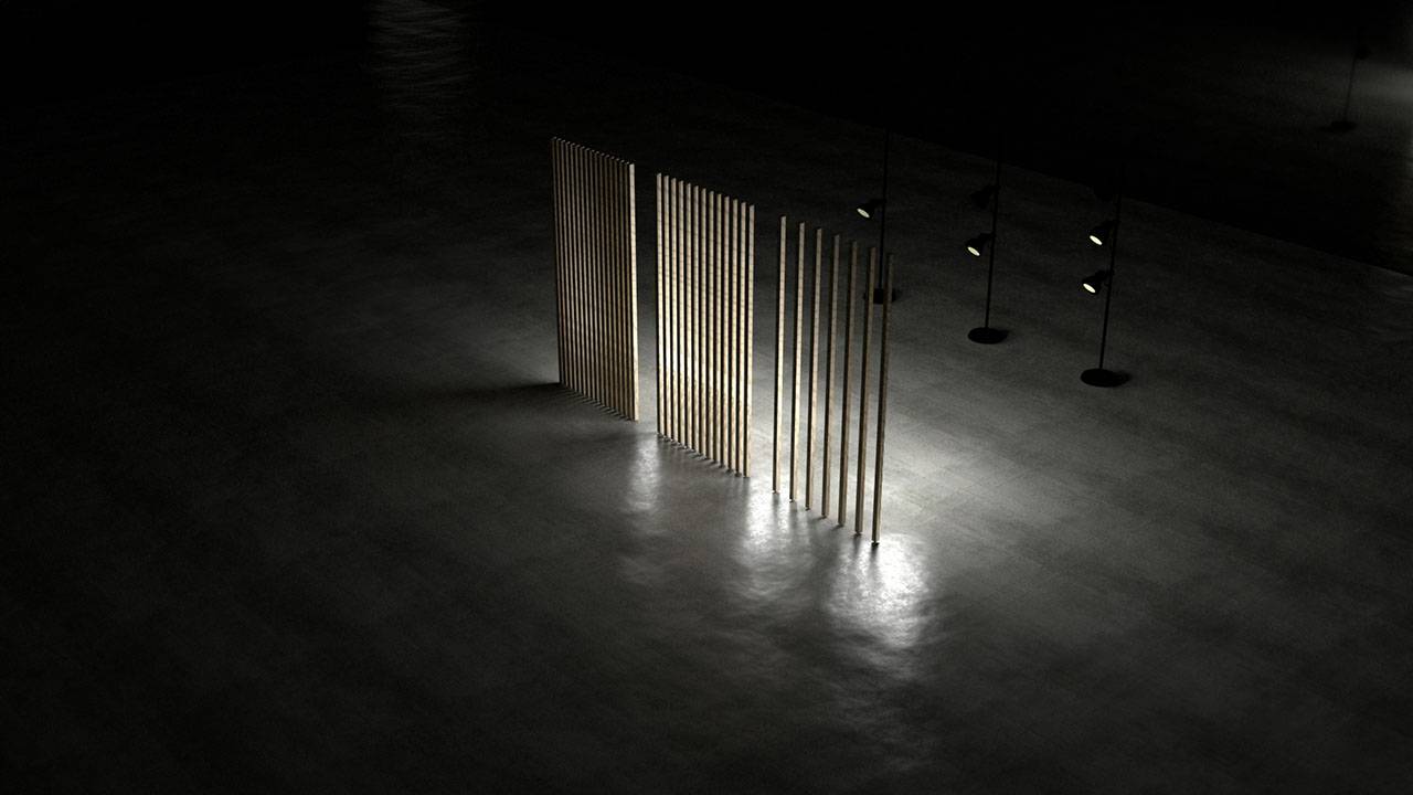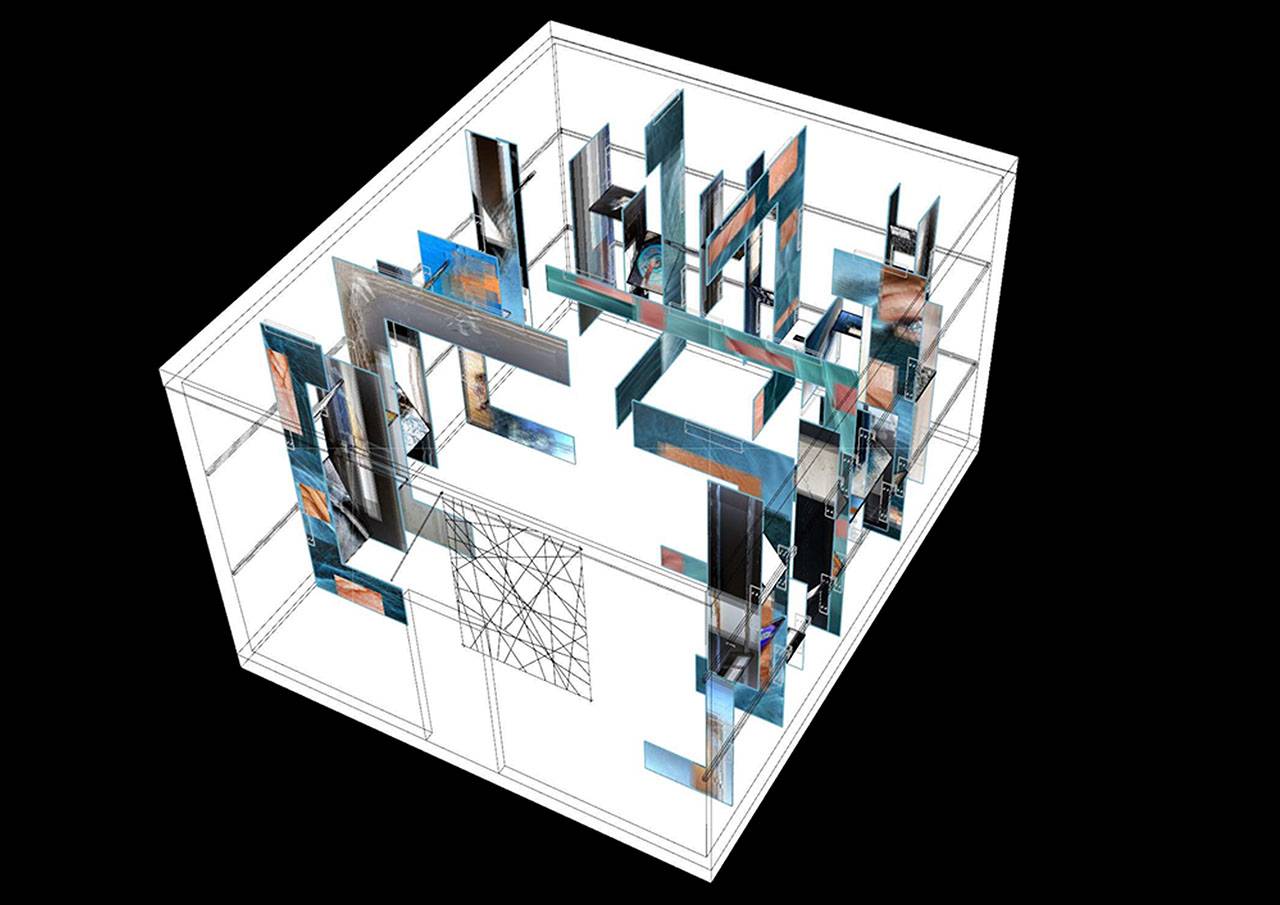 הרעיון מקבל בחלל ביטוי באמצעות עמודים קבועים, שכל אחד מהם מעוצב ״מסביב״ לחפץ. על הרצפה משורטטים החללים שבהם שהתה בתקופת הבידוד, כשהקבוע הופך לארעי והארעי לקבוע.
