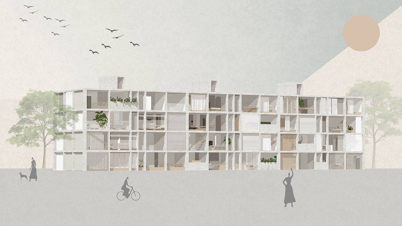 הפעולות בבית והאוביקטים שמרהטים אותו, הם שמובילים את התכנון ומייצרים את המרחב, עוד לפני קביעת קירות חלוקה – מהלך שעומד בסתירה להליך התכנון של שיכוני המאה הקודמת, כמו גם לתכנון של ימינו. ההתערבות מתמקדת במבנים טוריים בעלי שלוש כניסות, ארבע קומות ללא קומת עמודים, ודירות זהות ששטחן הממוצע הוא 60 מ״ר, כשהיא מוצעת בשלבים.