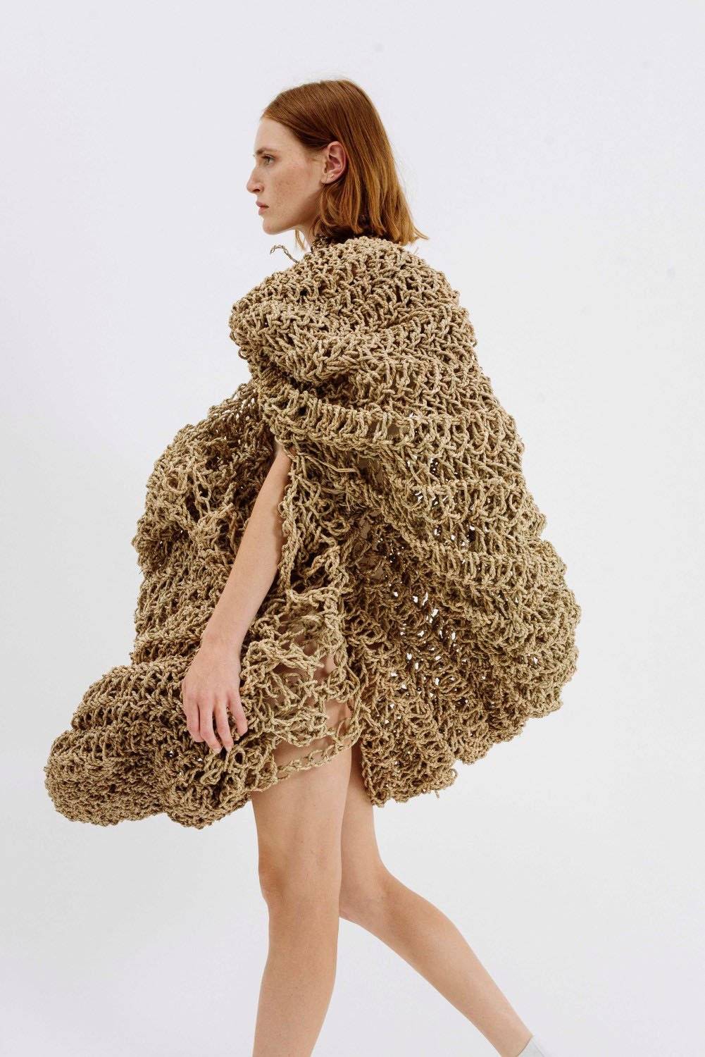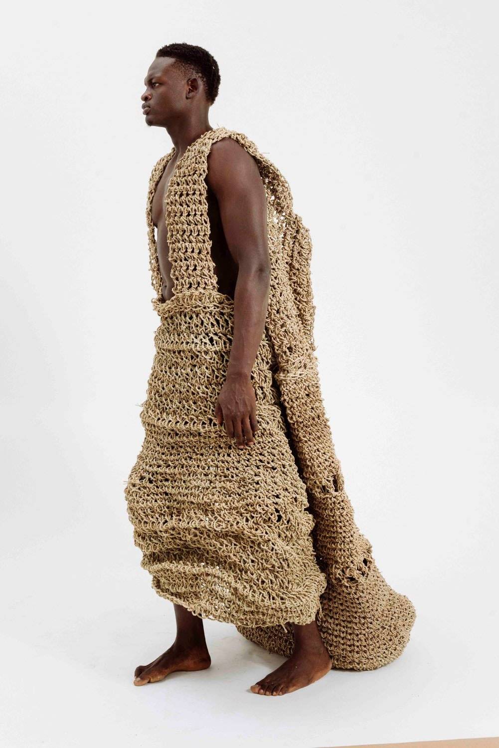 הטכניקה העיקרית בעיצוב הדגמים היא סריגה, ובאמצעותה חיפשתי לייצג סוגים שונים של קשרים – רופפים, הדוקים, נפרמים ולפעמים מתהווים. הלולאות שגדלות או קטנות בהתאמה לסוגי הקשרים שאני יוצרת, תלויות אחת בשנייה במארג משותף. עבדתי בעשב ים, שמשמש לרוב לקליעת סלים ומכלים, מתוך רצון לבחון את סוג ההכלה שבין אחים, חד־משמעית ללא גבולות? מוגבלת? או מלאה בחוקים? בחנתי איך בתוך קבוצה לומדים להכיל ולהיות מוכל, לשאת ולתת לאחר לשאת אותך.