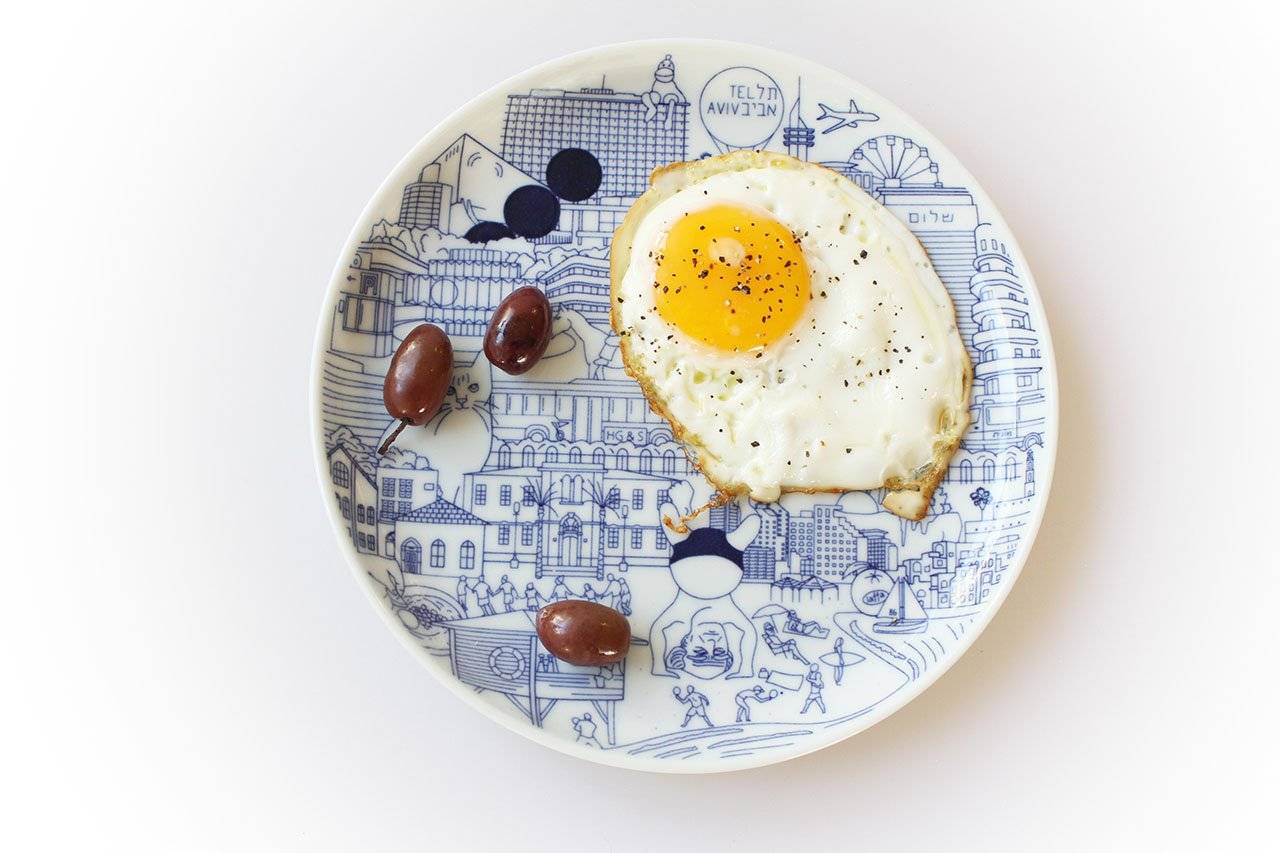 הצלחת היא TLV אייקון, שעשויה מפורצלן ומעוטרת באיורים מינימליסטיים־מעודנים של אייקונים תל אביביים. מי ״שמגיש״ אותה הוא פראג רוקח, המייסד והבעלים של היבינו, גלריה וחנות לעיצוב יפני, ובשנתיים האחרונות גם נורדי.