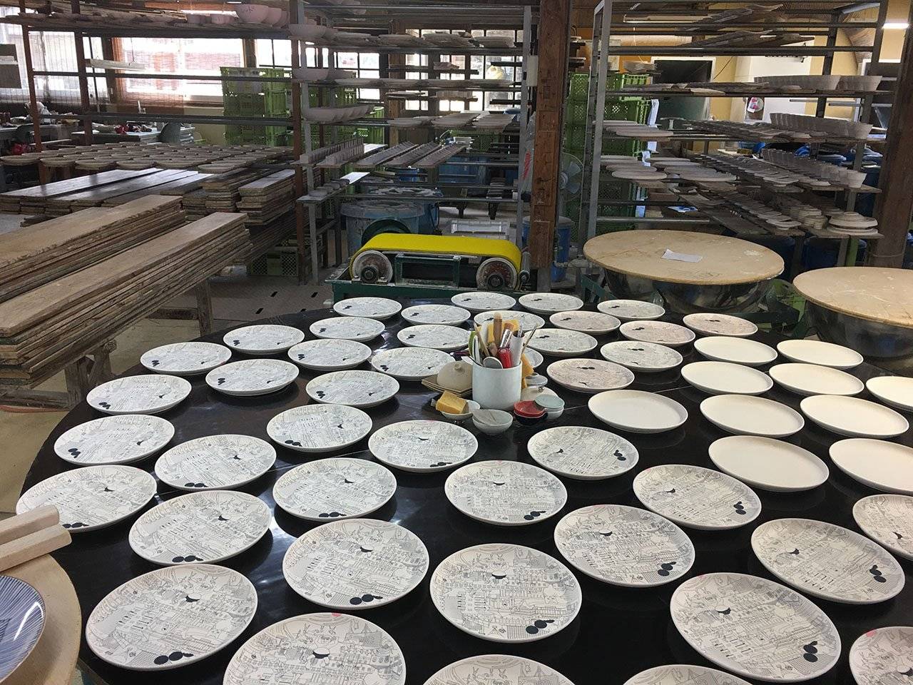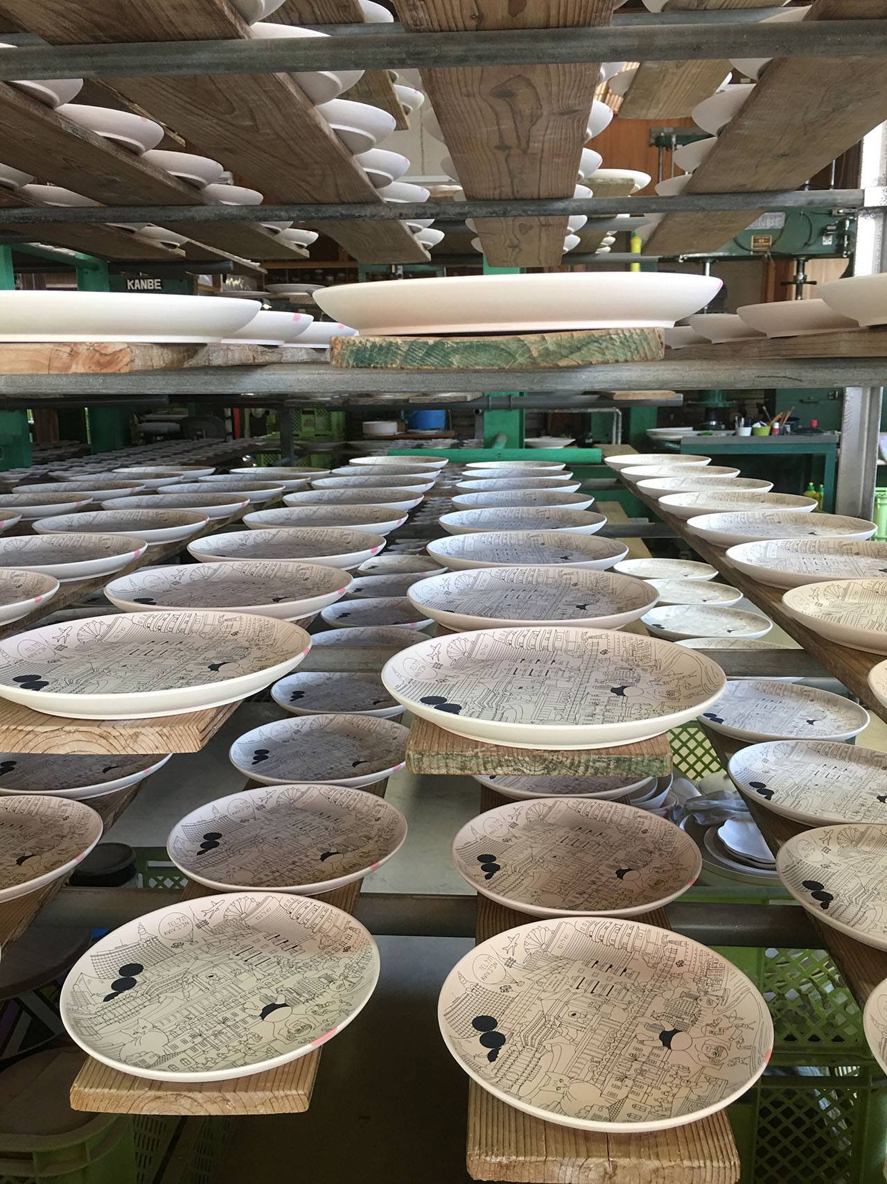 הצד היצרני של הצלחת התנהל ביפן והופקד בידי מאסטרים מומחים של קיהארה, יצרנית ותיקה ומובילה בתחומה מהעיר אריטה, שנחשבת למעוז הפורצלן היפני. האתגר הגדול, מספר רוקח, ״היה המעבר מהאיורים שצוירו על דף לצלחת. לצורך העניין המאסטרים הקדישו שבועות לגיבוש שלוש תבניות פליז שונות, על מנת ליצור אב טיפוס שידייק את האיורים ללא כל פשרות. הייצור התבצע צלחת־צלחת בתהליך של הטבעה, וכך גם הגימור – הגלייזינג – שבוצע ידנית״.