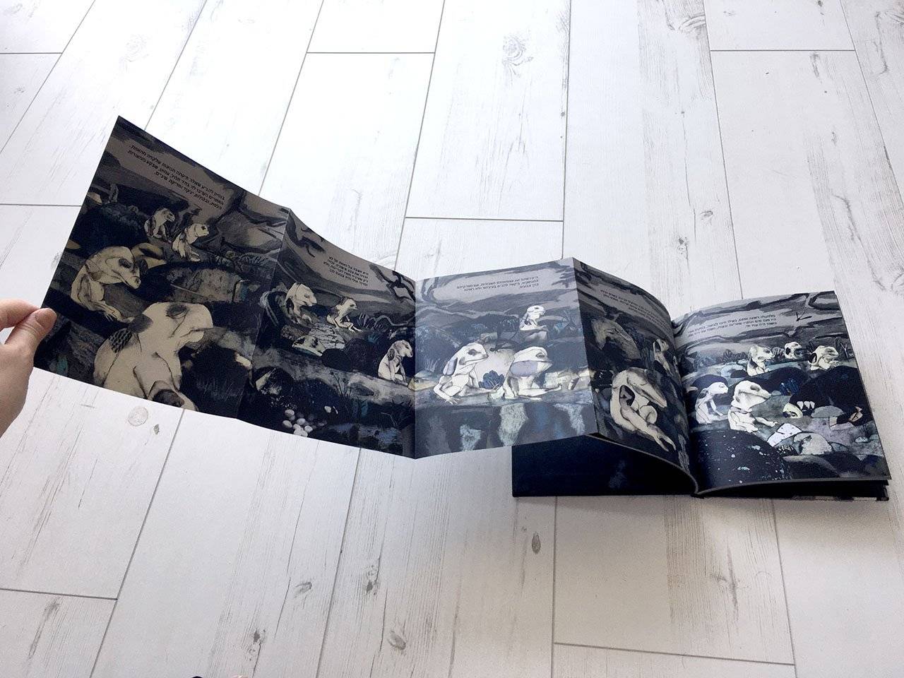 משהו שאתה לא יכול לראות בגירסה הדיגיטלית אי שם בלונדון, הוא שיש לספר הזה גם גייטפולד (כפולה שנפתחת הצידה), ובכלל שההבטים הפיזיים שלו משמעותיים ושייכים לסיפור. ובהקשר זה אני צריכה להודות לתמיכה של המועצה לתרבות ואמנות של מפעל הפיס, שאיפשרו הפקה כל כך יקרה, שאחרת אי אפשר אפילו לחלום עליה…