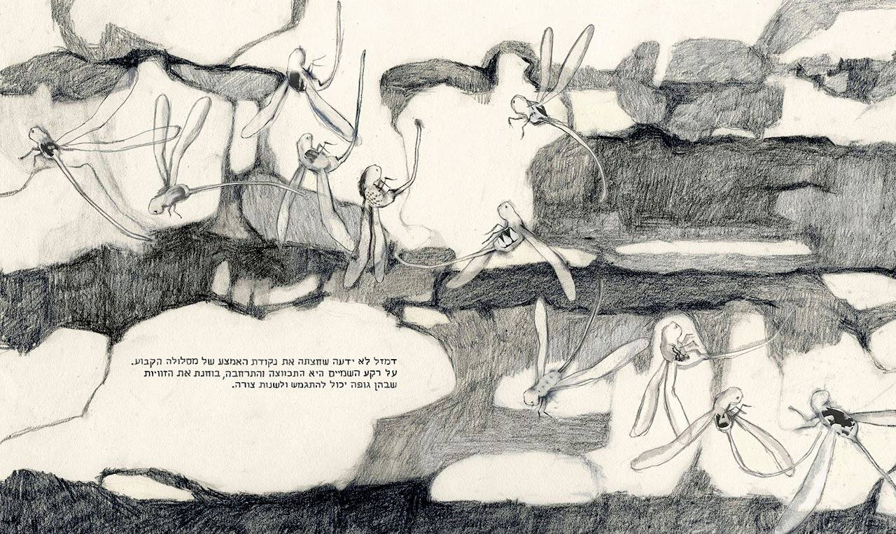 הגיבורה שלו, לכאורה, היא דמזל (Damsel), יצור היברידי, שילוב של עלמה וחרק. ומה שקורה בו בצורה די פשוטה הוא מסע מלידה עד מוות, גלגול חיים… משהו שיכול לחזור על עצמו שוב ושוב. גם מבחינת סביבת ההתרחשות זה עולם ראשוני של סביבת הטבע הכי בסיסית. וכמו שכתבה העורכת המדהימה נורית זרחי, זה דיוקן עצמי של איך האני חווה את העולם.