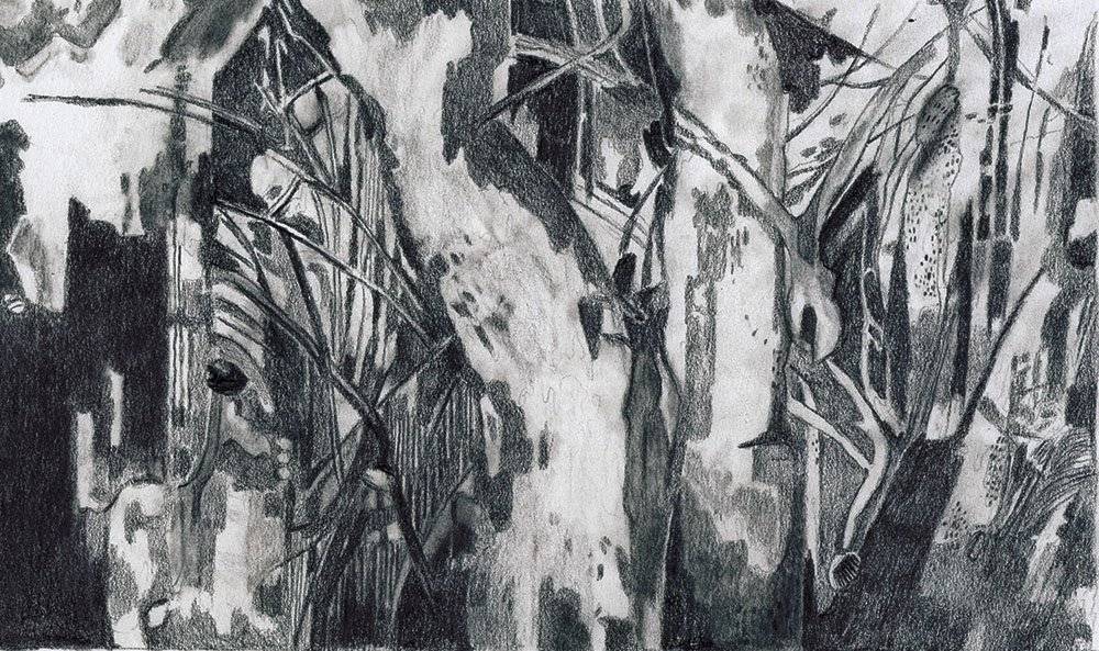 היה לי צורך ליצור עולם מוגן, פנטזיה, אבל לא פנטזיה אידיאלית ויפה חלילה; פשוט שיהיה עולם. בתור מישהי עם ״עור דק״ מאוד, התחושה שהעולם החיצוני מציף את החושים, התחלתי לצייר על קירות גדולים, להקיף את הדמות ביער, בשורשים. אבל זה לא יער עשיר או יציב במיוחד: בסופו של דבר יצא לי יער שברירי ומתקלף כמו הגוף של הדמות; כמו הכנפיים שיכולות להקרע.