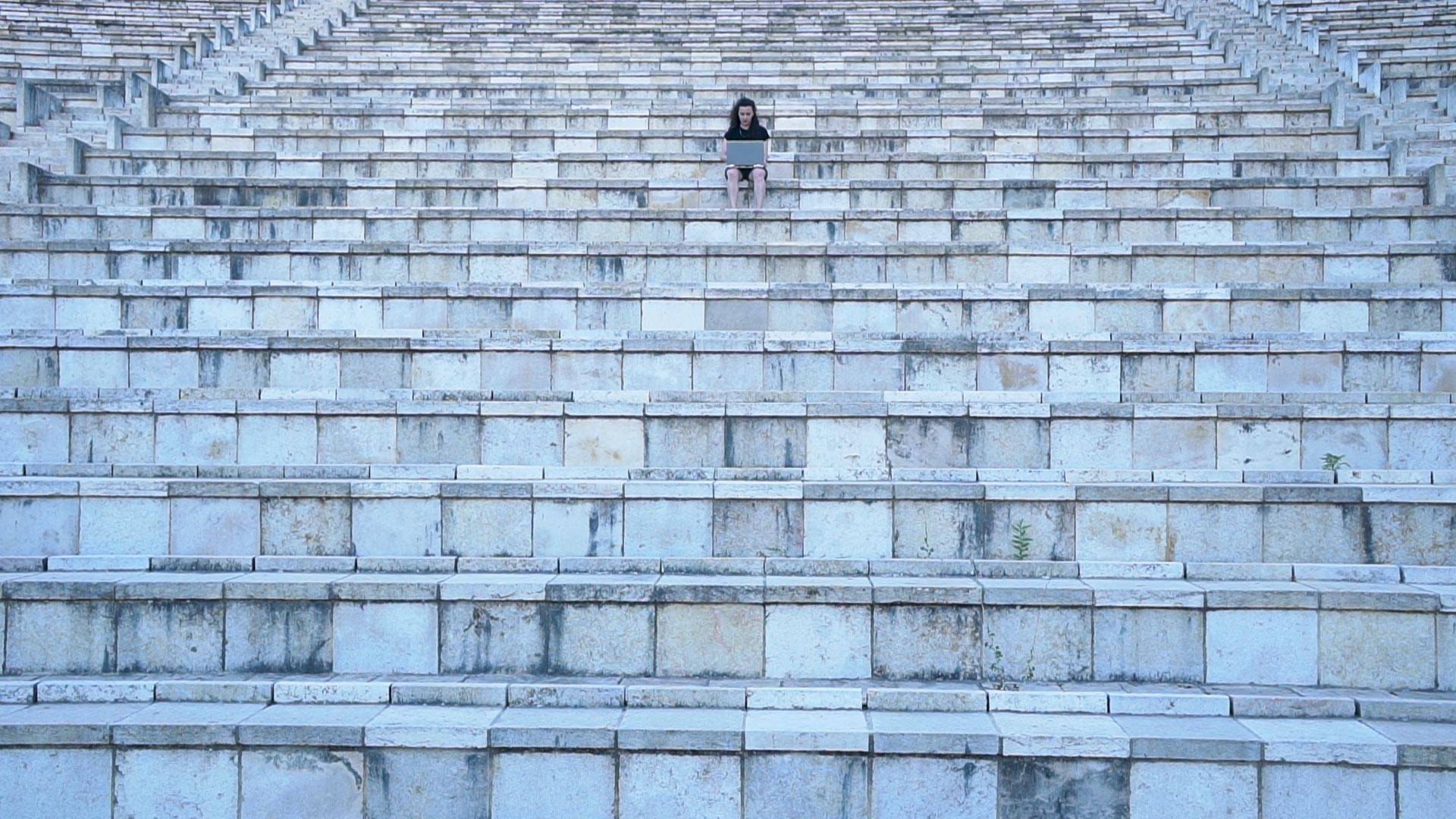 העבודה נבעה מתוך אדריכלות של חלל ספציפי בבצלאל, חדר גדול ועמוק המחובר בחלקו העליון בחלון לחדר צר וקטן. הצופה יושב לבד בחדר הקטן למעלה, ורואה את העבודה מבעד לחלון המזכיר את חדר המקרין באולם קולנוע. אני יושבת למטה בחלל הגדול, מפעילה את העבודה דרך המחשב. המערך שיצרתי כלל מצלמה שמוצבת מאחורי הצופה, ובשלב מסויים הדימוי של הצופה מושתל בתוך הסרט המוקרן. כך ברגע אחד יחסי הכוחות משתנים, הצופה הופך ממתבונן מהצד לחלק אינטרגלי מהעבודה.
