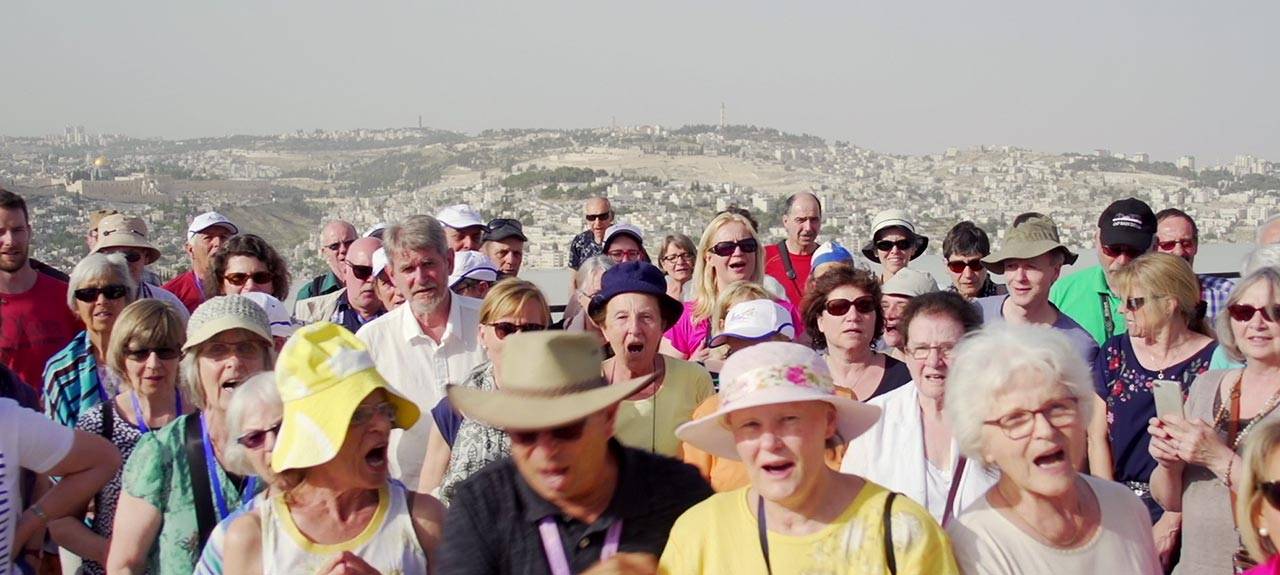 ברגע שאצבע נלחצת על הכפתור שמפעיל את ״המדריך הקולי״ וקולו המוקלט מסתנכרן עם קולו של המדריך האנושי – אנחנו חוזרים בזמן. הכאן הופך למכאן. ״מכאן, בנקודה שבה אנו עומדים אברהם ראה את ירושלים, אז הר המוריה, בפעם הראשונה שהיא מוזכרת בתנ״ך״, ״ומצד ימין״, איפה שעומדת עכשיו גדר ההפרדה, ״דוד הגיע לירושלים״, לעומת זאת ״מצד שמאל״, הר הבית, ״שם מוחמד עלה לשמים״.