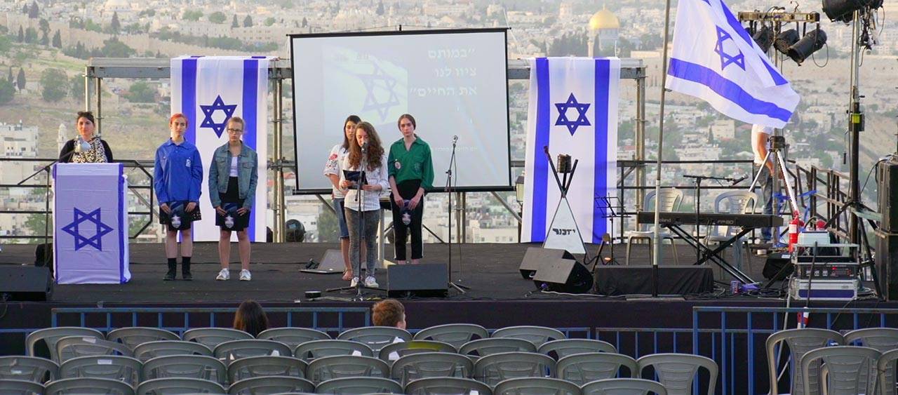 הפרחים שפורחים בטיילת ארמון הנציב נחרזים בזרי יום הזיכרון, והמעבר בסרט בין יום הזיכרון ליום העצמאות עובר דרך ריקוד של ילדה במהלך חזרה לטקס. דרך הריקוד שלה מתחלפים השירים שמסמלים את הימים האלה, כל יום והשיר שמסמל אותו. אט אט נבנה מגדל בבל־ישראלי שצורתו שואפת לחשוף את זהות אנשיו, כמו שהם שואפים לחשוף את אלוהים.