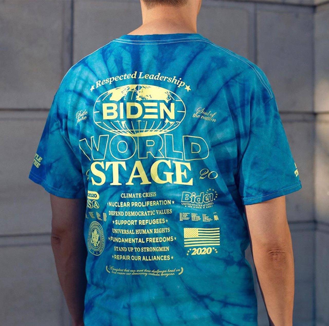 עיצבתי עבור ביידן חולצות טי צבועות בסגנון טאיי־דאי, שנראות כמו החולצות שמעצבים ללהקות מוסיקה שיוצאות לתור של הופעות. בגב החולצה רשומים ערכים מהקמפיין של ביידן. את החולצות אפשר לרכוש באתר הרשמי של ביידן. מחיר החולצה שעיצבתי עומד על 45$ וכל ההכנסות הן לטובת הקמפיין
