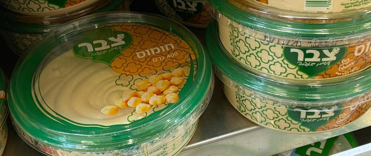 עדלי סטוק, אריזות לחומוס צבר, 2007 לערך. באדיבות מכון שנקר לתיעוד וחקר העיצוב בישראל