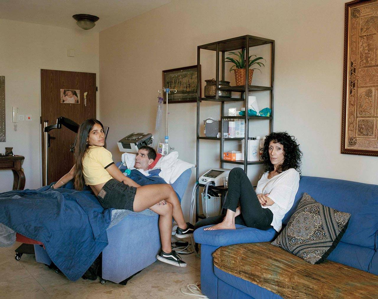 אחד מפרויקטי הגמר הבולטים בתחום בצילום בשנה שעברה היה ״להחזיק מים״ של יום עומר במחלקה לצילום בבצלאל, שבו הוא תיעד את ההתמודדות של אביו עם מחלת ALS, ואת חיי המשפחה סביב המורכבות הזו. ״הוא היה חולה בערך חמש שנים״, מספר עומר, ״שזה ממוצע תוחלת החיים של החולים במחלה הזו. זה ניוון שרירים, תהליך מאוד קשה שרואים אותו מאבד את היכולות שלו לאט לאט. באמת זוועה. הייתי מגיע הביתה לעזור כל סוף שבוע בשנים שהוא היה חולה.