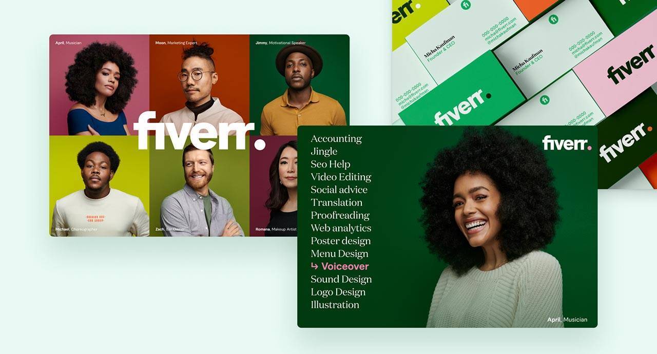 בנוסף החברה נותנת פיתרון שלא כמו פעם רק ליחידים אלא גם לעסקים, ״במחירים שהם ממש לא חמישה דולר״, מבהיר ברקן. ״אלה יכולים להיות מחירים כמו בעולם האמיתי, מזול ועד יקר. גם ברמת הביזנס וגם ברמת הפרילנסר שירוץ איתי באופן קבוע, כחלק מהצוות שלי, משהו שבשגרה ולא רק סגירת פינה, בלמעלה מ־500 קטגוריות של שירותים – העיקריים ביניהם עיצוב גרפי, שיווק דיגיטלי, כתיבה ותרגום, וידאו ואנימציה, מוזיקה ואודיו, תכנות וטכנולוגיה, עסקים ולייפסטייל״.