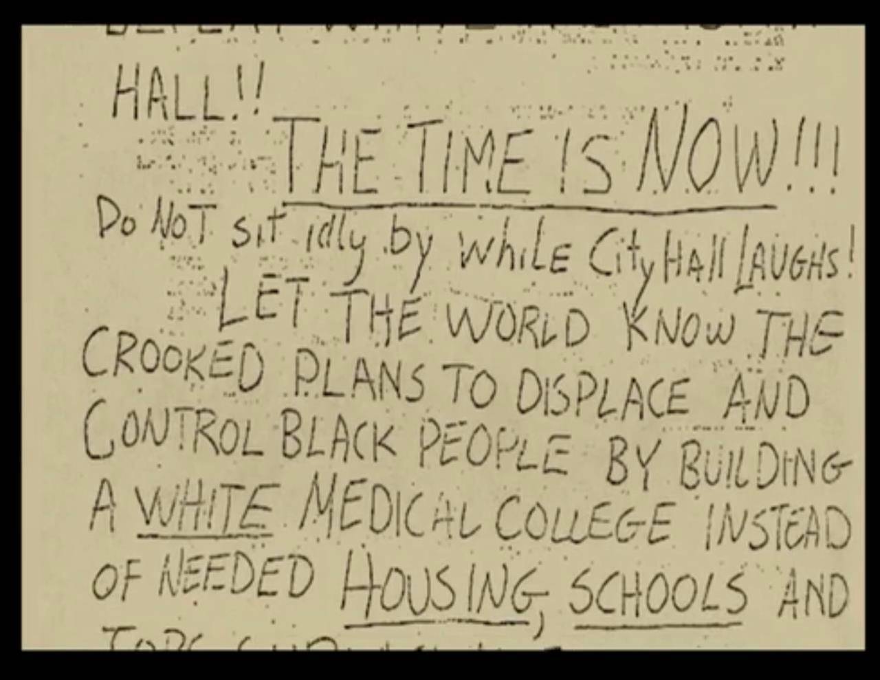 בהמשך, בהדרגה, מופיעים קטעי מוזיקה, ראיונות, קטעי ארכיון, ונאומים, שנשזרים יחד לרצף אידאולוגי. אמירי ברקה וראס ברקה, מחנך ופוליטיקאי, ומי שלימים נבחר לתפקיד ראש העיר של ניוארק, בולטים בזכות שילוב סוחף בין מנהיגות לכישרון תיאטרלי.