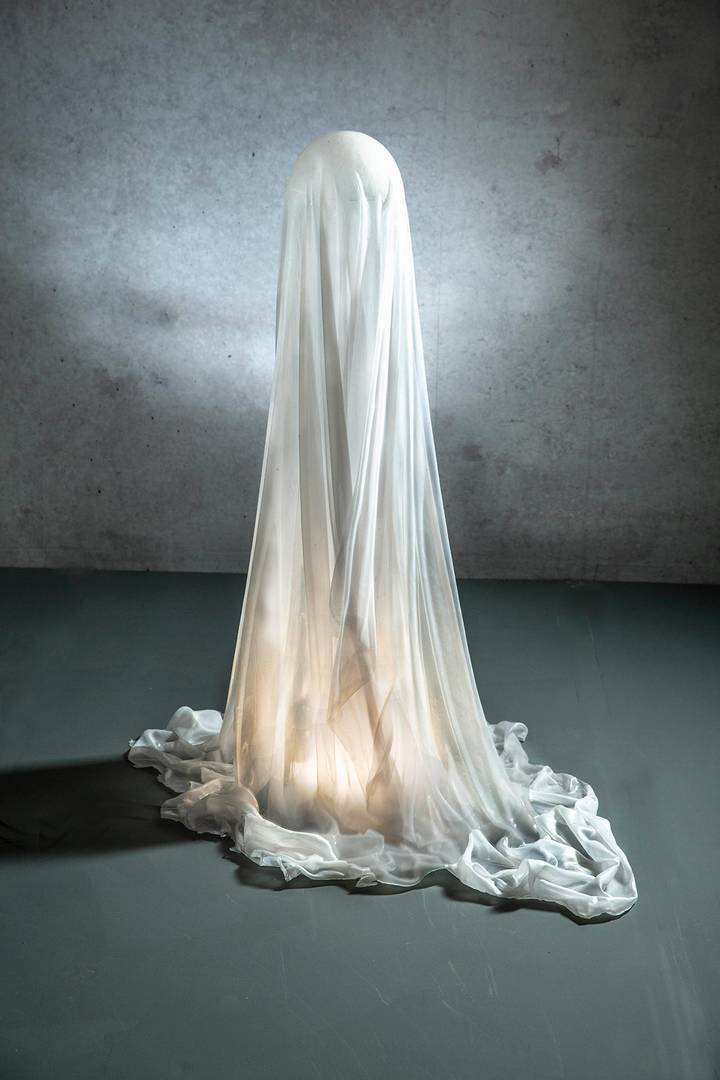 הבד כמו נשפך באופן טבעי ואז אני מקפיאה את תנועתו. מה שנותר זה רק זיכרון הקיפולים שלו, כשכל קפל וכל קמט הופכים להיות סיפורים שהאור הכלוא בתוכם ומופץ דרכם חושף זוהר ויופי שאינם ברורים מאליו