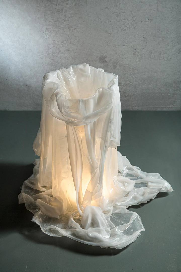 ״הבד כמו נשפך באופן טבעי ואז אני מקפיאה את תנועתו. מה שנותר זה רק זיכרון הקיפולים שלו, כשכל קפל וכל קמט הופכים להיות סיפורים שהאור הכלוא בתוכם ומופץ דרכם חושף זוהר ויופי שאינם ברורים מאליו״. כך, נראות הגופים, לפי כרמלי לנר, ״מדמה כלי קיבול אמורפיים המפיצים תאורה אמנותית, אור נעים שנע בין גלוי למעורפל, בין מט למבריק, בין אטום לשקוף ובין סטטי למלא תנועה״.