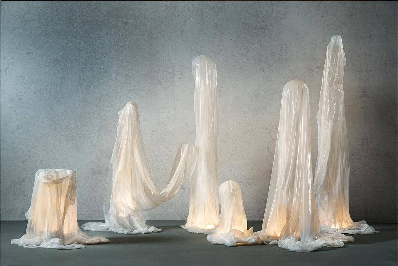 שתי הקולקציות שעומדות בלב התערוכה הן ״ריקוד האור״ ו״טבע חי״. הראשונה היא קולקציה חדשה שעוצבה במיוחד לתערוכה, ומציגה פסלי אור שמבוססים על ״הקפאת״ בדים שקופים בשילוב פולימרים ומסגרות מתכת עדינות.