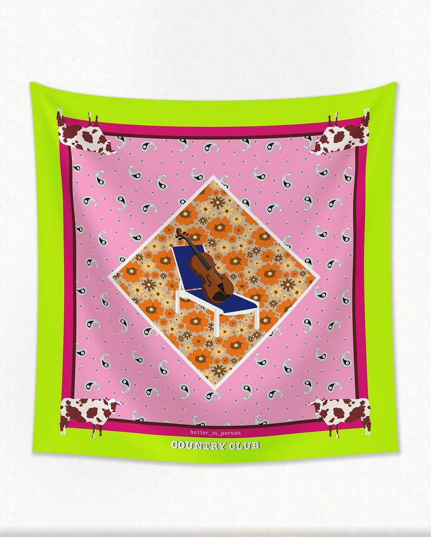 כל הדימויים בקולקציה התפתחו מהמילה קאנטרי ונוצרו שילובים משמחים: הכינור שמשתזף בשמש על כסא־ים, ״קווילט״ של בריכה ומדבר, פסלי קרח של ברבורים שנמסים בדיונות, טיפות התה שנשפכות מהקנקן הופכות לפייזלי, ובופה ענק של קינוחי קצפת מהאייטיז. כל פריט מספר סיפור אחר: חלק מההדפסים הם בעלי אופי מעט חלומי יותר וחלק מספרים סיפורים יותר מובנים