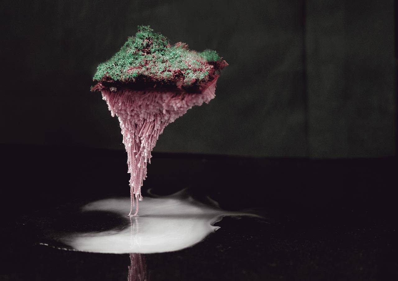 בעבודה אני מתבוננת על הקשר בין חברה ואקולוגיה: כיצד הכשלון בלנסות לייצר חברה אנושית בריאה והעיסוק ביחסי היררכיה ותחרות מובילים למשבר אקולוגי. קולוניית הטחב היא מטאפורה לקהילה ולכלכלה, כשההתערבות שלי או של הקהל באקלים של הטחב מייצרים מטאפורה נוספת.