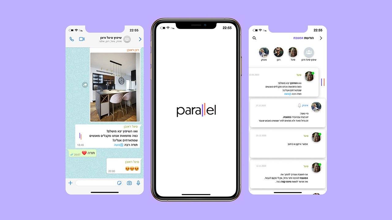 בכל רגע אנו טובעים בתוך עוד ועוד הודעות ותכנים שנשלחים לעברנו באינספור ערוצים ושיחות. Parallel הוא מוצר דיגיטלי שמטרתו לארגן מחדש את תכני השיחות בווטסאפ באופן מדויק יותר, ובמקביל לשמר את הקשרן בעזרת בוט נלווה לשיחה. הפרויקט מציג שימוש דרך שתי דמויות, האחת לשימוש מקצועי, והשני לשימוש חברתי, על מנת להציג את הוורסטיליות של המוצר.