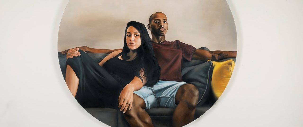 שאלת המבט מעסיקה אותי בחיי האישיים סביב זהותי המזרחית ולצד בן זוגי, אלעזר, בן הקהילה האתיופית. במרכז החלל הצבתי צמד מראות עגולות, אלמנט פיסולי שעליו מוקרנת אנימציה של רישומי דיוקנאות שלי ושל בן זוגי על קירות החלל, לצד ההשתקפות של הצופה במראה. על הקיר המרכזי אני הצבתי ציור שמן על בד עגול בקוטר שני מטרים המתאר זוג בסצנה ביתית כשאנחנו, הוא ואני, מישירים מבט אל הצופה.