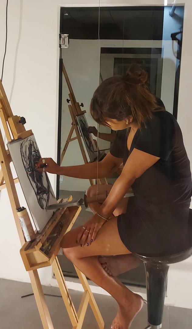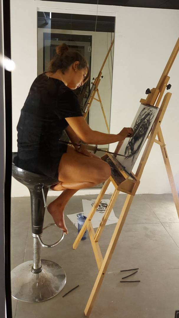 ״אני בוחרת במודע לנטרל את כוח המבט שלי, ולייצר חלל סטרילי מנותק מן המציאות שבחוץ. בחלל אני יוצרת דיוקנאות עצמיים אגב התבוננות במראה החד־כיוונית. בין הקנבס לביני תלויה מהתקרה חרב פיפיות – חרב בעלת שני להבים ופוטנציאל פגיעה כפול. הסכנה הטמונה בחרב היא טריגר ומנוע ליצירה, ומצבי הקיצון והסכנה שנוצרים מפעילים ומעוררים אותי בתהליך. באמצעות פעולה זו אני בוחנת את גבולות היצירה״.