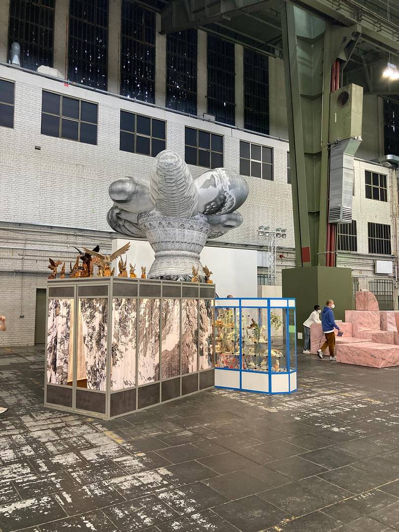 בעבודת הזוג הרוסי איליה ואמיליה קבקוב ״החתירה האחרונה או אנדרטה לאדם האחרון״, שייט בודד חותר במאמץ רב בים שיש. העבודה – ששמה קשה לתרגום ונושא במכוון ריבוי משמעויות – היא מטאפורה למצב אירופה והעולם: מגיפה, תסיסה פוליטית, משבר פליטים ובריחה. ההבטחה לחיים חדשים היא אשליה מסוכנת, אבל עדיין לא שקעה. הספינה האירופית הזו, הנושאת מטען יקר של תרבות, נאבקת לשרוד והיא עדיין מחוז חפץ למי שבא מבחוץ. עבורנו, השגיאה בעברית בטעות (או שלא) שכתובה במהופך, מוסיפה ניחוח של כתב צופן וזרות.