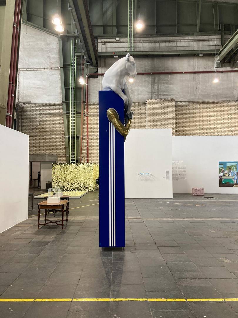 ״אולאפור אליאסון ביקש מקום שיתאים להצגת ׳המסדרון הצהוב׳ שלו, ורצוי אזור מעבר. הצבת היצירה הזו ממש בכניסה לתערוכה הייתה בחירה לא רק הגיונית אלא ממש מושלמת: האור המונוכרומטי מציף את החלל בצבע צהוב ובהשפעתו רואים רק גוונים של אפור. כשהכול שטוף באותו צבע, כל הגיוון הולך לאיבוד. מערכת היחסים עם הסביבה מנוטרלת. אפשר לומר שהאמנים קוראים לנו לצאת למסע בקרקע בתולית, להיפטר מן המטען שהבאנו ולבסוף לפקוח את עינינו לעולם הסובב אותנו״.