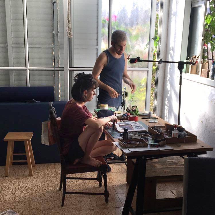 ניר צילם מראש בטכניקת טיים־לאפס של שמתעדת בהרבה פחות פריימים לשנייה, ומה שיצא בסוף היה ארבע שעות של אלתור שלי על גבי ספר שנדחסו לקליפ של שתיים וחצי דקות. מתישהו לקראת הסוף כבר התעייפתי והייתי צריכה הפסקת אוכל, אז אכלנו לוביה ואורז שניר הביא ואמרנו שנחתוך את זה אחר כך בעריכה, אבל בדיוק אז הגיעה בריזה של ערב מהחלון והפכה את הדפים של הספר מעצמם. זה היה מגניב, אז כבר השארנו את זה.