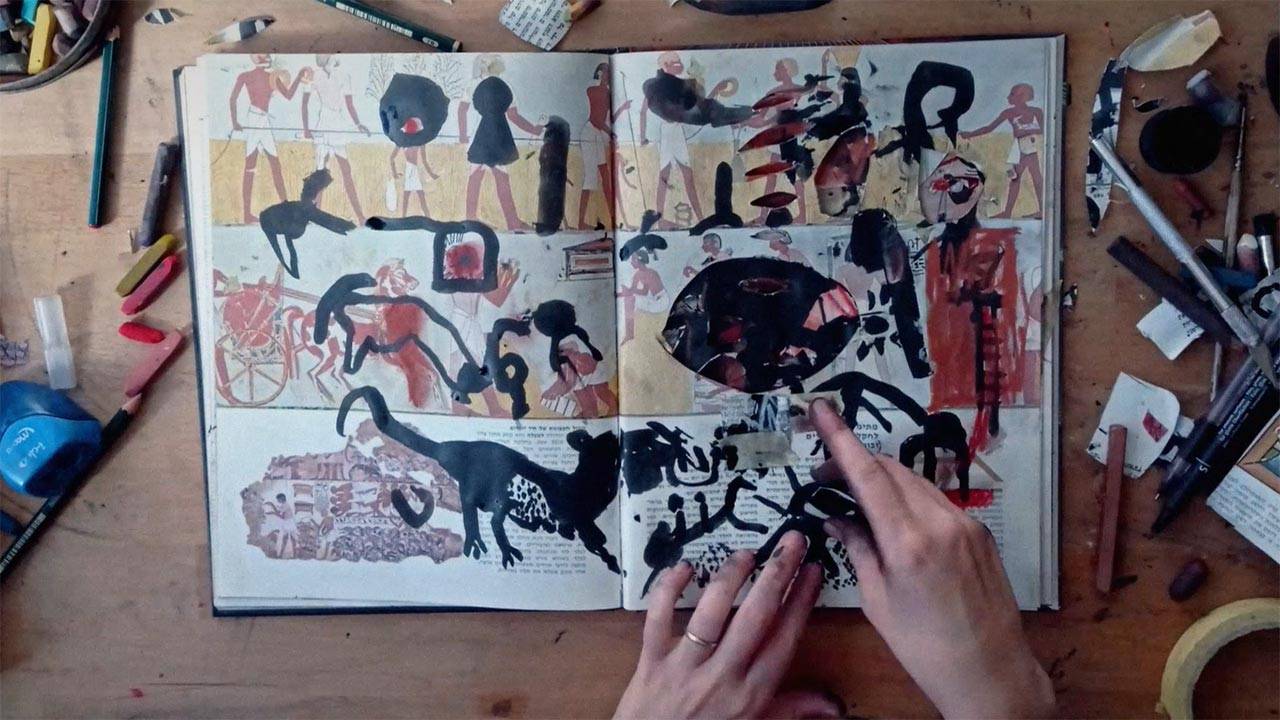 ספר ישן על תרבויות עתיקות שמצאתי לא מזמן ברחוב שימש לי מן רפרנס קבוע, אפשרות לעבוד על מצע קיים, סוג של עוגן. היה לי ברור שמה שיקרה ביום צילומים יהיה חד־פעמי ושהמשחק הזה, שבין אלתור לתכנון, הוא חלק מהותי מהדבר עצמו, ולכן בימים שלפני הקליפ ממש עשיתי ״חזרות״. את החזרות עשיתי על ספר אחר, דומה מספיק לספר המצולם.