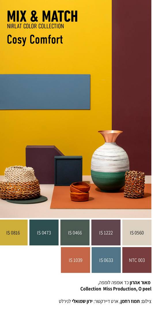 הגוונים בעולמות התוכן עצמם מוצגים כשילובים מומלצים ובהתאמה, מערכי הצבע בכל אחד מהם מחמיאים ועובדים זה עם זה באופן מושלם. הפורמט המשחקי בקולקציה מאפשר יצירה רחבה, מפתיעה ואף נועזת יותר של שילובים צבעוניים ונותן חופש עיצובי מוחלט ואישי לחלוטין לבחירת המינונים שלהם בחלל.