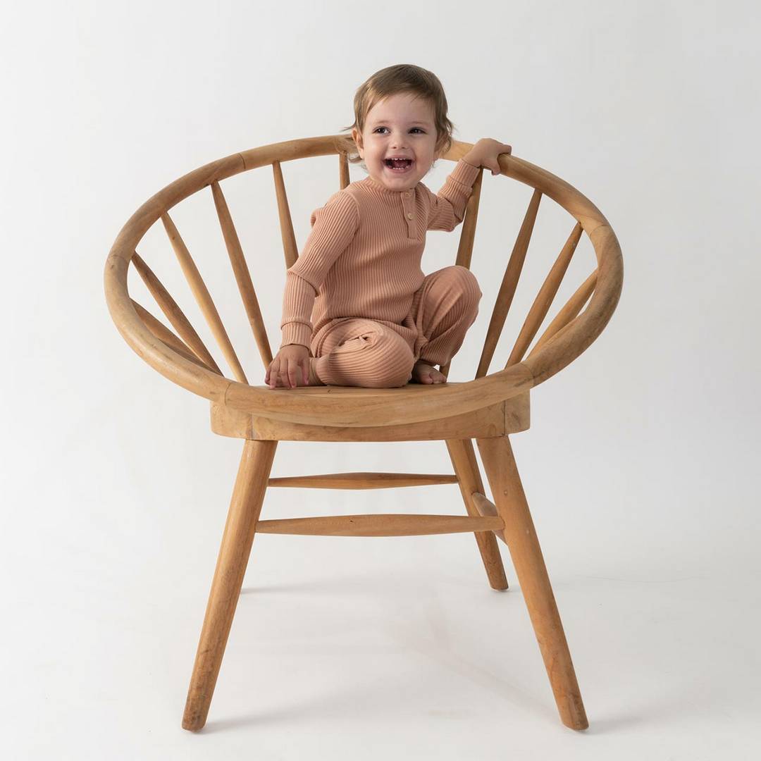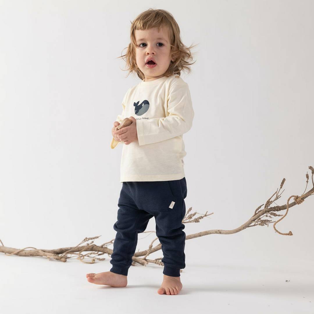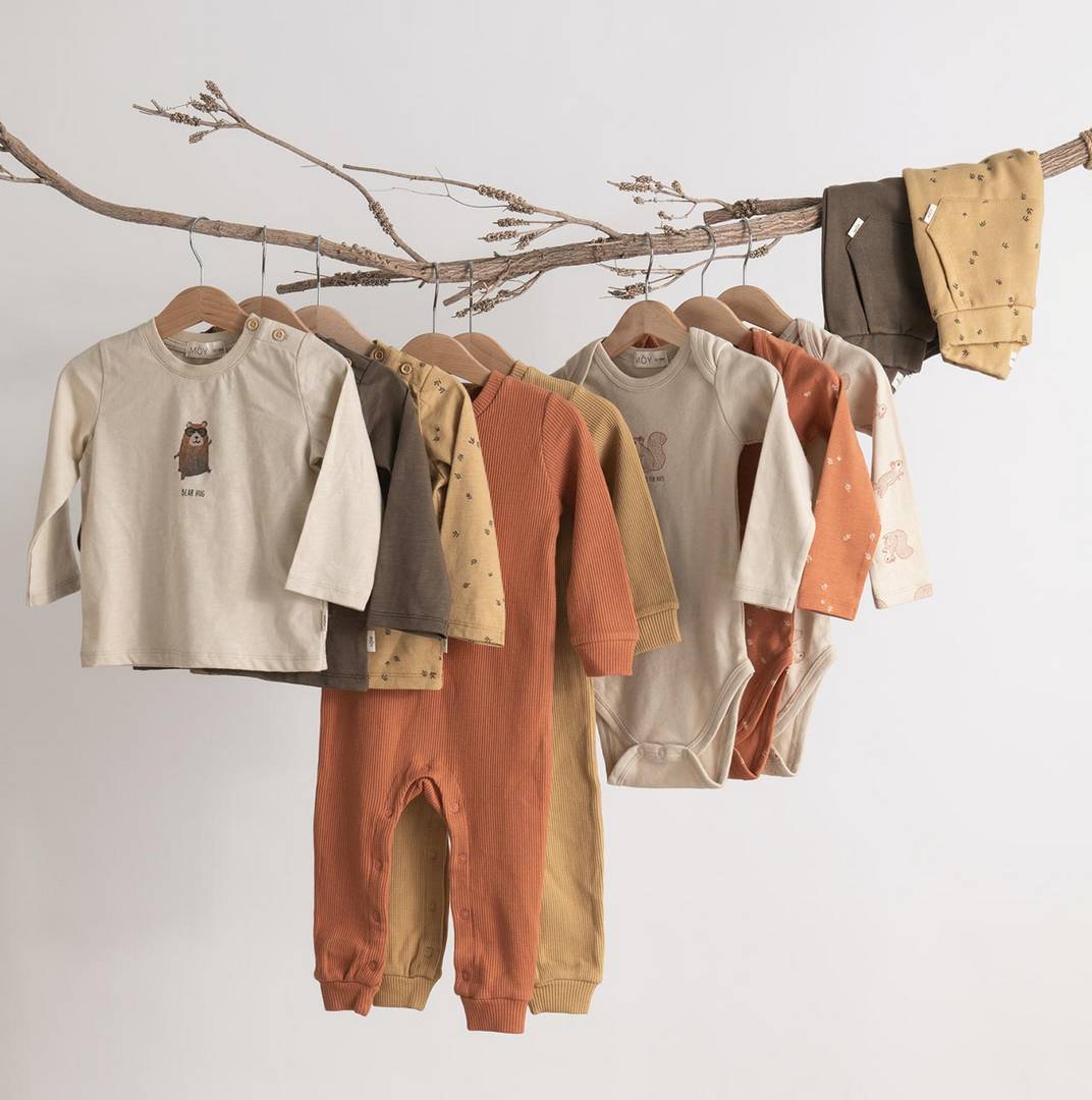 גפן: העדפתי לעצב מבחר מוצרים ממוקדים. הקולקציה בנויה משלוש קולקציות. אדמה: צבעי אדמה עם ירקרק וורוד פודרה; ירח: שחור שמנת ואפורים; ואוקיינוס: כחול נייבי עם נגיעות של שמנת, קאמל וחרדל. רוב הקולקציה היא יוניסקס מלבד פרטי בנות מובהקים (פרחוני/סלסולים/פפיון) היה לי חשוב שיהיה יוניסקס. אני אוהבת שזה מתערבב ושאין שמרנות יתר. כך גם צילמתי את התינוקות
