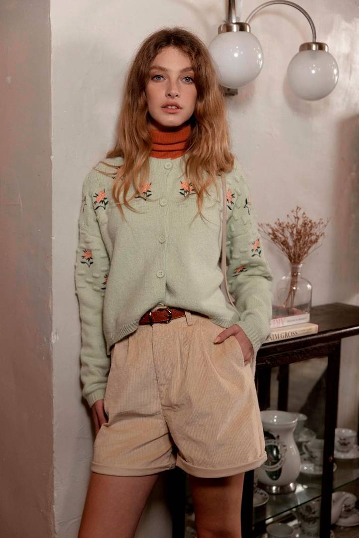 עוד בקולקציה מעילים, חצאיות שיפון וחליפות מודפסות, קרדיגנים שמשלימים מראה של שכבות. גזרות הסוודרים מדגישות שרוולי ענק רחבים, המסתיימים בחפתים נשיים.