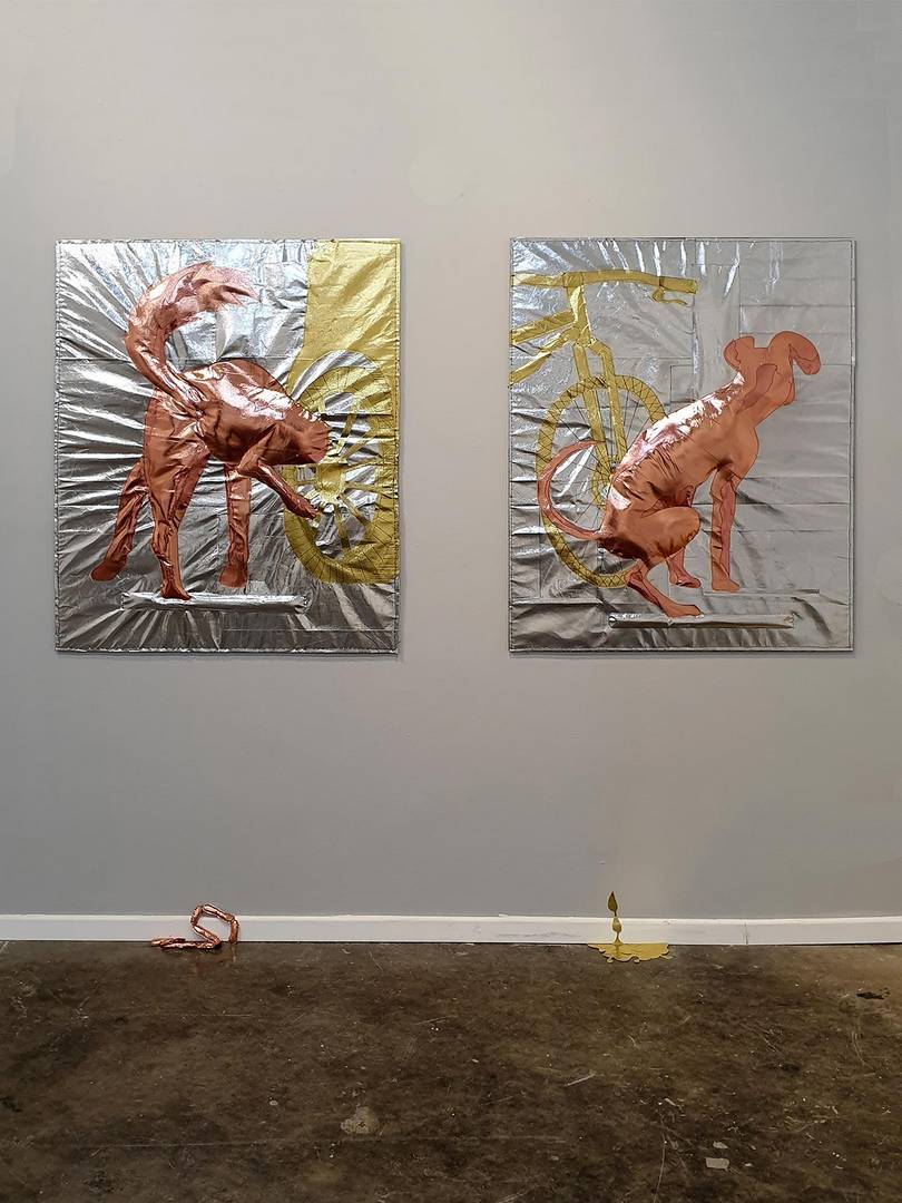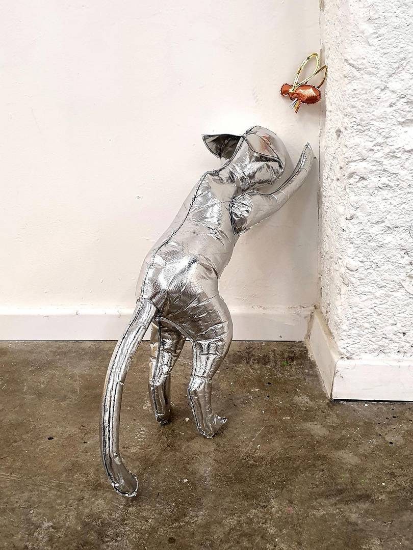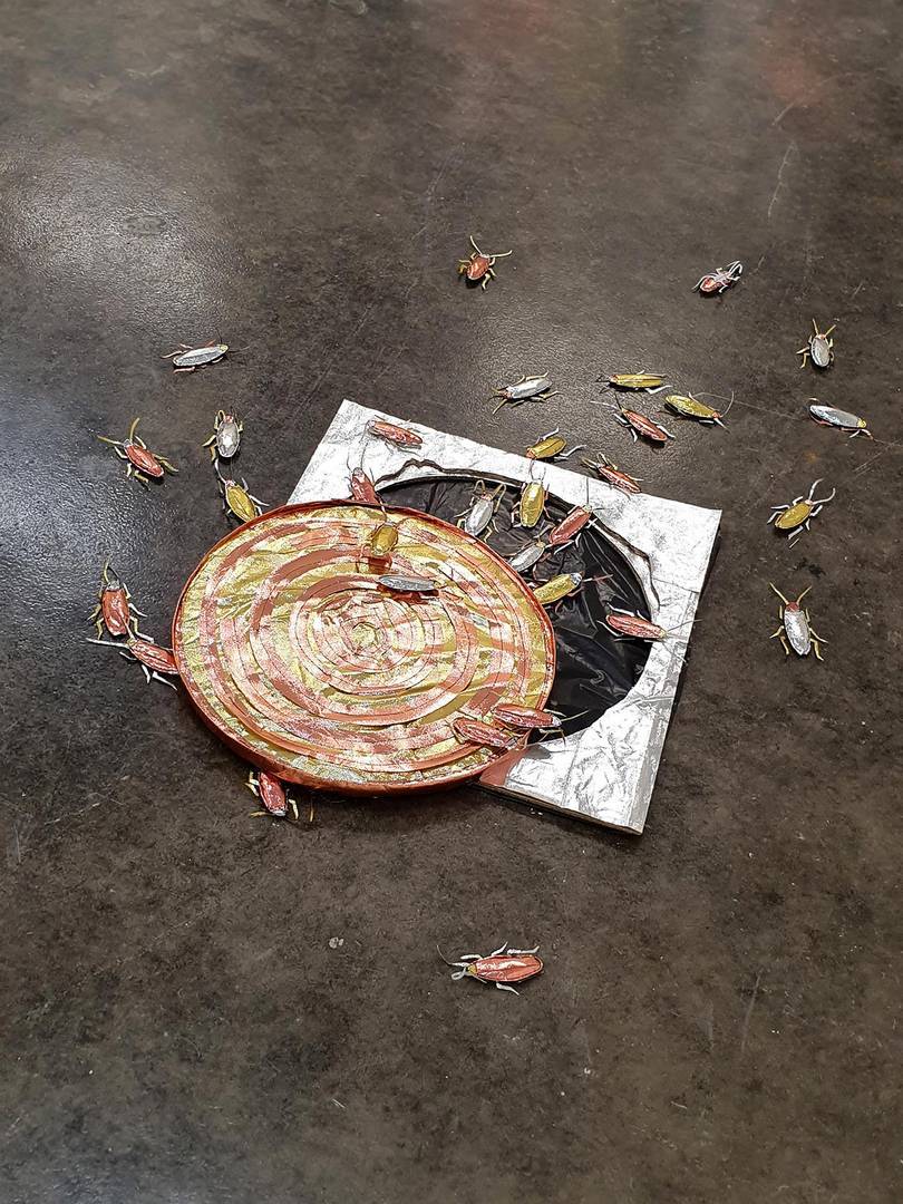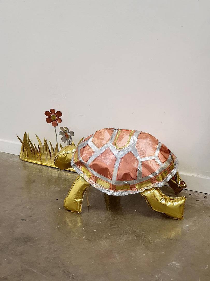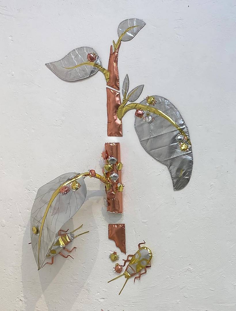 הכל התחיל בתחילת השנה בתערוכת יחיד אחרת שלי (במוזיאון הגיאולוגי רמת השרון- משובצת), שבה הצגתי תכשיטים מחומרים שונים שמצאתי בבית בתקופת הסגרים, ואחד החומרים היה שקית גולדה זהובה. יצרתי ממנה סט תכשיטים תלת־ממדיים מלאים במילוי סינתטי, שאמנם נראים כעשויים מזהב אך היו רכים. ומשם כיד הדמיון הטובה התחלתי ליצור ״ממתכות״ דימויי ענק (בשבילי, כי כצורפת הכל הוא די קטן)