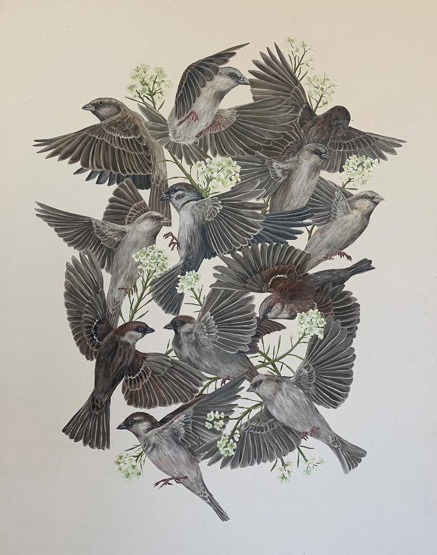 באמצע דצמבר תפתח תערוכת יחיד חדשה לנעה אלון בגלריה אורבן בתל אביב. אלון עבדה בתקופת הקורונה מביתה במרכז תל אביב מתוך התבוננות מבעד לחלונה: היא מתעדת את הטבע המשתלט על העיר, והתוצאה היא לקט של ציורי ציפורים וטבע שחוותה סביבה.