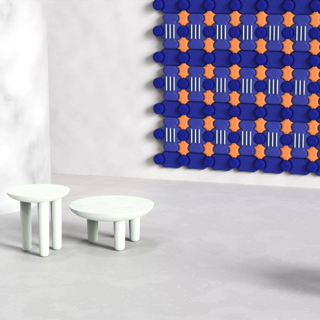 תום: אני עדיין לא חושבת שהגעתי לפתרון, אבל כן הנחתי את האבן הראשונה בשביל האבנים הצהובות שלי. התרגום של פרינט לתלת־ממד בא לידי ביטוי בקולקציה הנוכחית בסדרה של אריחים תלת־ממדיים ומאוד (מאוד!) נפחיים לקיר, ככה שהמוטיבים של חזרתיות, מקצב ומרקם באים לידי ביטוי בה באופן מוחשי לחלוטין. האריחים יצוקים ידנית ועשויים גבס פולימרי, ככה שהם עמידים ויכולים לעמוד בתנאים קשים 🙂