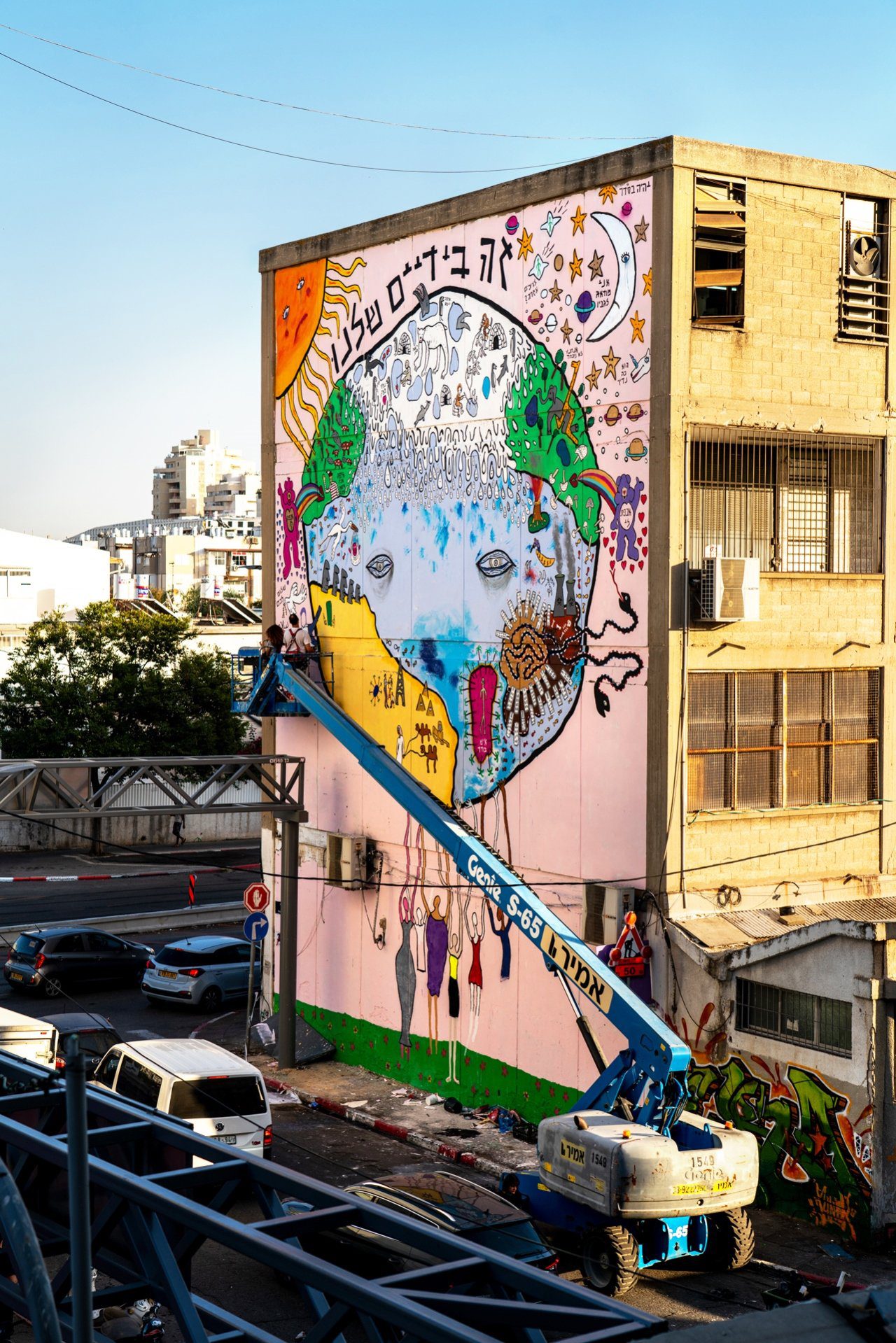 אני שמח על המיקום של העבודה, מה גם שזה לא באמת אפשרי להזיז או לשנע אותה, היא צמודה לבניין ונעשתה במיוחד למקום. הייתי רוצה לייצר עוד עבודות גדולות בסגנון הזה – זו הייתה חוויה חדשה ועוצמתית לעמוד במשך עשרה ימים על מנוף, בגובה של כמעט 20 מטר, ולצייר בקנה מידה כזה. למדתי מזה המון. גם האימפקט הסביבתי של עבודה בגודל כזה משמעותי.
