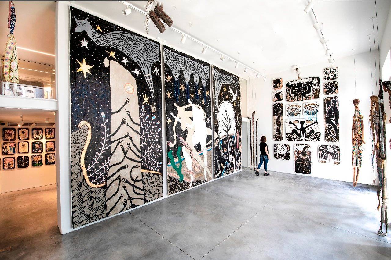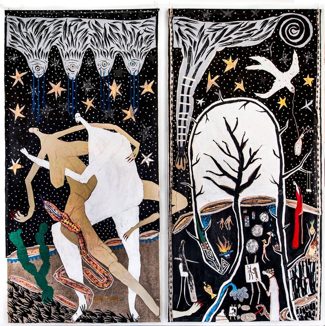 בקנה מידה שונה אבל משמעותי, הטריפטיך שיצרתי לטובת תערוכת היחיד האחרונה שלי בבית סות׳ביס תל אביב. עבדתי על העבודה הזו כחמישה חודשים על רצפת הסטודיו שלי. לתערוכה קראתי ״נשמות״, היא הייתה עבורי משמעותית מאוד והעבודה הזו הייתה הלב של החלל המרכזי.
