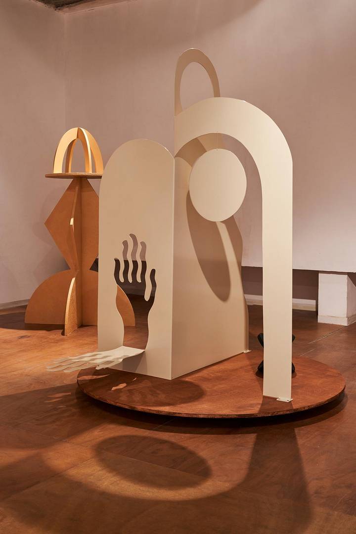 גל: אני חושבת שהעיסוק שלי בצורות בסיסיות, מופשטות יומיומיות ומעברים בין הדו־ממד לתלת־ממד, והרצון ליצור ציור בחלל ויכולת להכניס את הצופה אל תוך ההצבה. בתערוכה יש צמצום והגדלה של האוביקטים ביחס לעבודות קודמות.