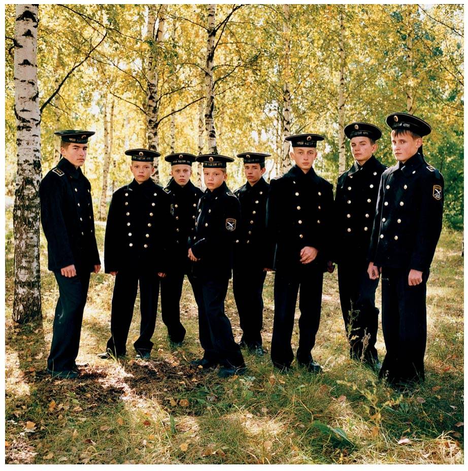 הספר הראשון שמוצג בתערוכה התמקד בפרפורמרים מקומיים; בהתחלה בקרקס, מקום שבו הפנטזיה פוגשת את המציאות, ואז בקבוצות שונות של רקדנים סלוניים, אקרובטים, נערי ונערות גומי. ״הצילומים נמשכו חמש שנים ובשלב מסויים ב־2005 פגשנו בדרך קבוצת צוערים צעירים שהחלטתי לצלם בספונטניות. ב־2009 חזרנו לאותה העיר ברוסיה לצלם את סדרת בתי הכלא; יש בה צילום דומה של חבורת אסירים צעירים. שתי התמונות מתכתבות זו עם זו; שתי חבורות של גברים צעירים באותה עיר שחיים מציאות שונה לחלוטין״.
