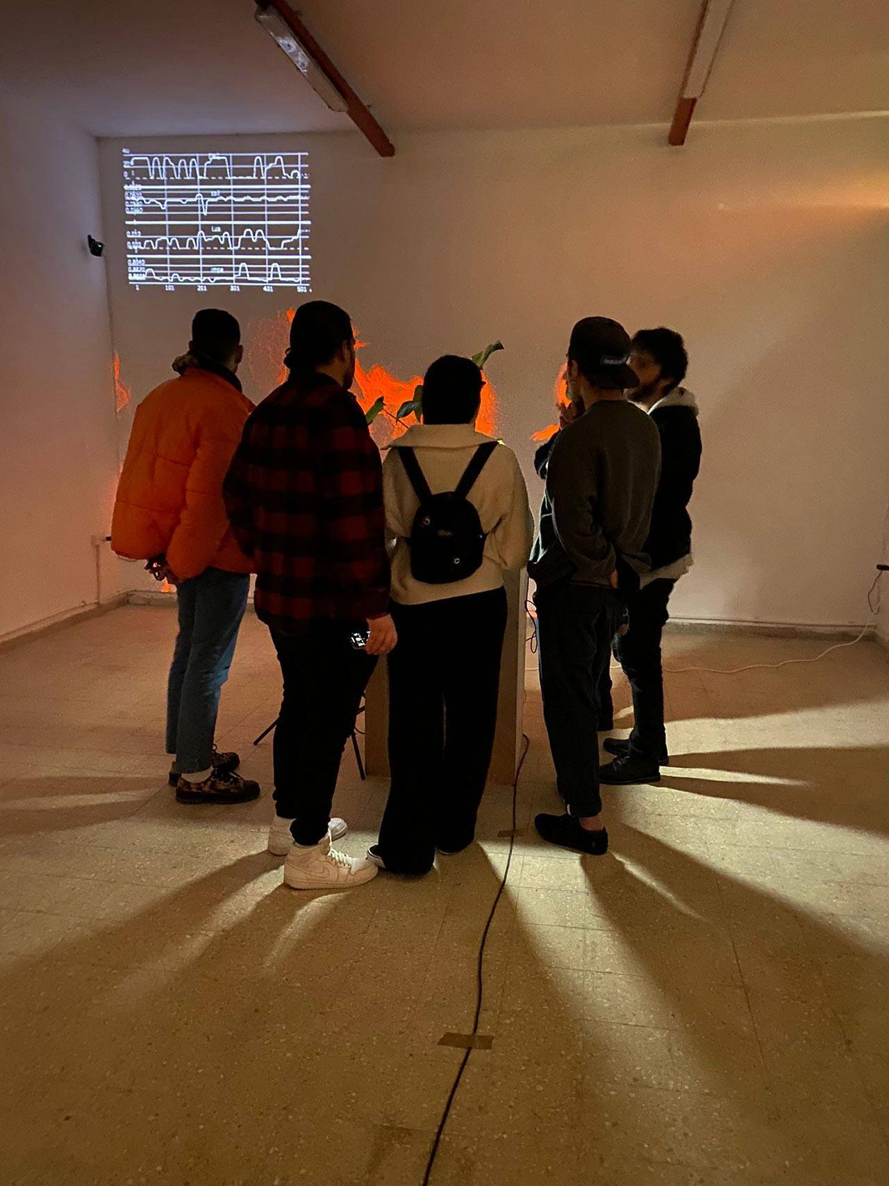 רונן: במפגש עם עדן ותוך הכרות עם המחקר שלו, מצאתי את עצמי מתעניין בדאטה שהמכשיר שהוא בנה מייצר בזמן אמת, ובעיסוק בשאלה של להחיות דאטה שמבוסס בעיקר על סיגנל ה־EMG – שינויי המתח החשמלי בצמח. רציתי לנסות להנפיש את המידע ליצירת מוזיקה עם ויזואל בזמן אמת, שנשלטים באופן רציף מהצמח והמתח החשמלי שלו.