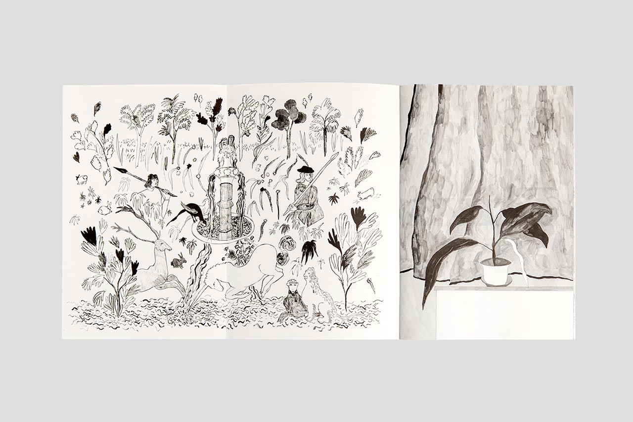 וגם זה מגיע מהדרך שבה עבדתי על הספר, או שאני עובדת באופן כללי. בגלל שאני מתחילה מרעיון כללי ויחסית מופשט של סיפור ובעיקר של תמונות וסצנות, ומתוך הרעיון הכללי הזה מתפתח סיפור בעיקר בצורה ויזואלית, דרך התמונות. זה נותן לי הרבה חופש לקפוץ בין אסוציאציות ולחזור לעלילה מידי פעם, בלי להיות מוגבלת למלים. אז זה לא שמראש החלטתי שלא יהיו מילים בסיפור אבל ככל שהעבודה התקדמה לא ראינו צורך בהן.